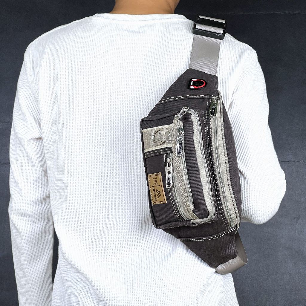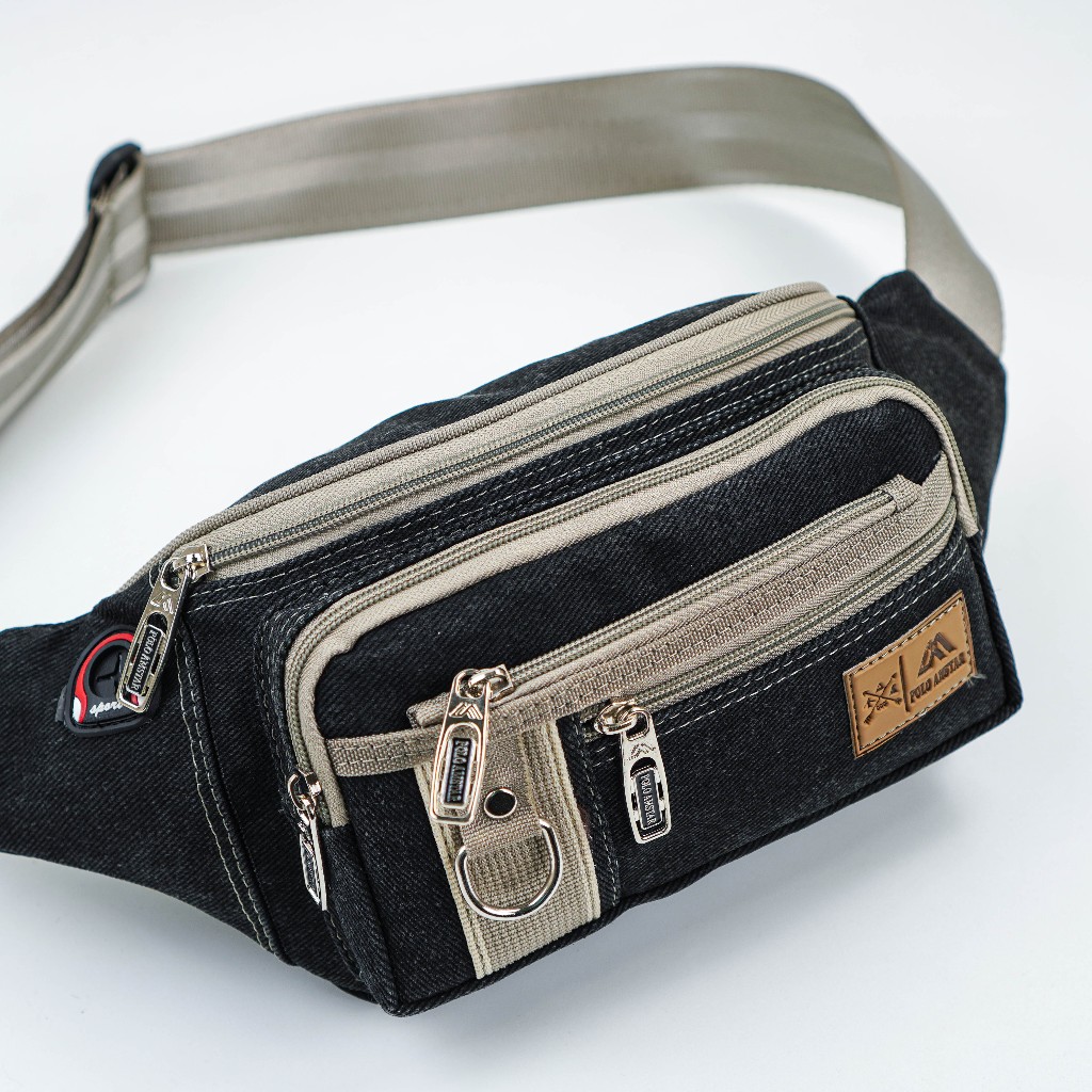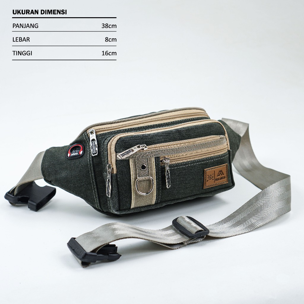 Tas Selempang Pria POLO AMSTAR Canvas Waistbag Slingbag Kanvas Tas Pinggang Cowok Casual Multifungsi