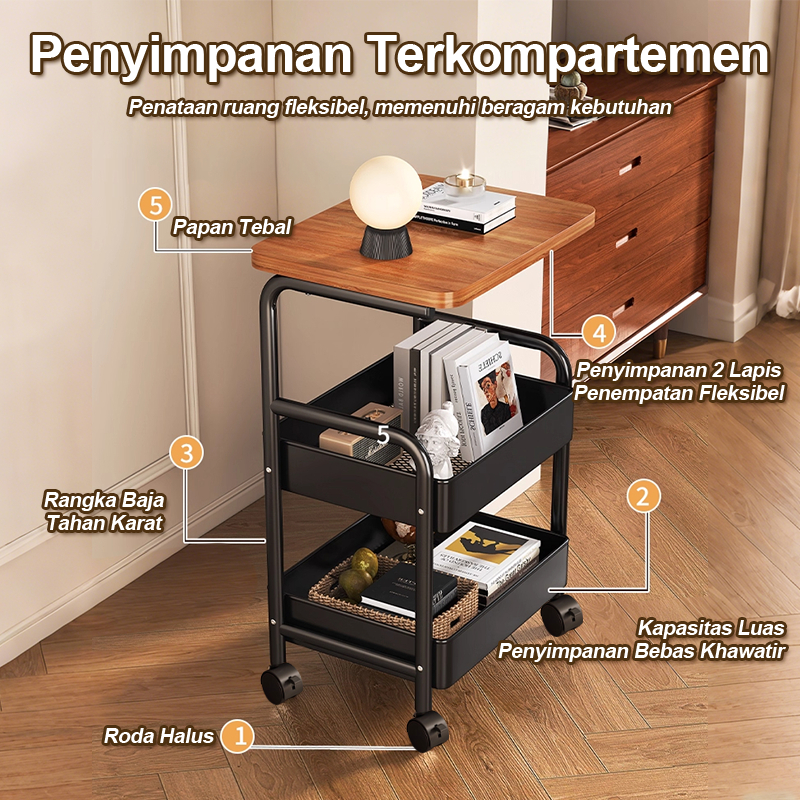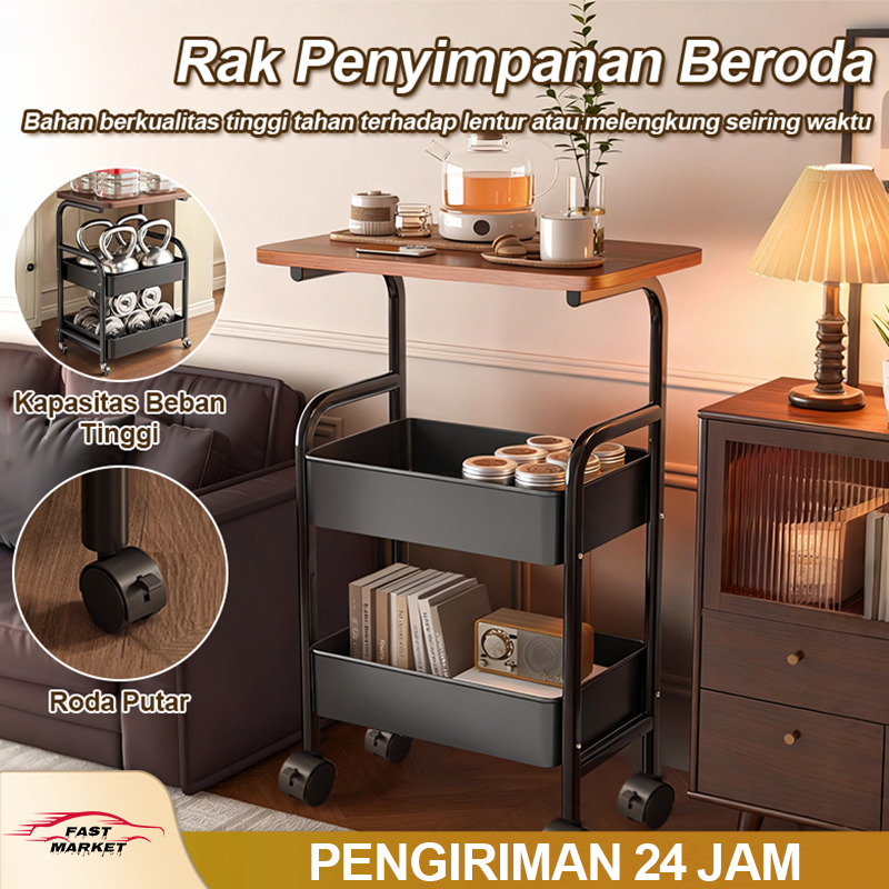 Fast Market - Rak Troli Susun Serbaguna Rak Dapur Troli Dengan Roda Meja Samping Sofa Troli Bergerak Rak Kamar Mandi Rak