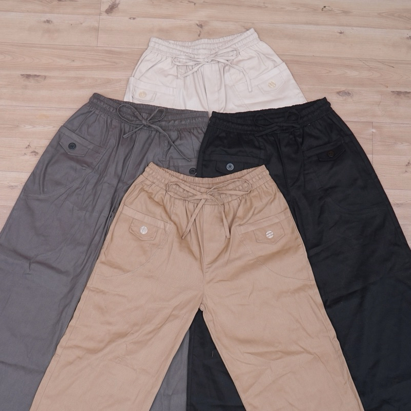 Celana Kulot Wanita Highwaist Korean Style Kekinian Kantong Depan Variasi Kancing