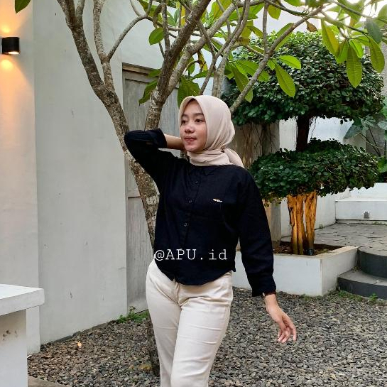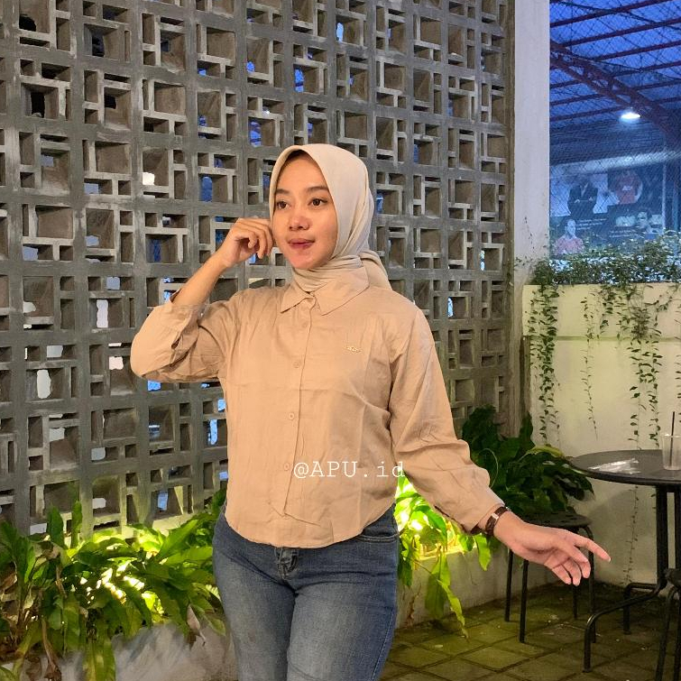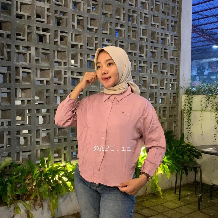 Kemeja Crop Rayon Twill Sakura Premium Atasan Wanita Kekinian