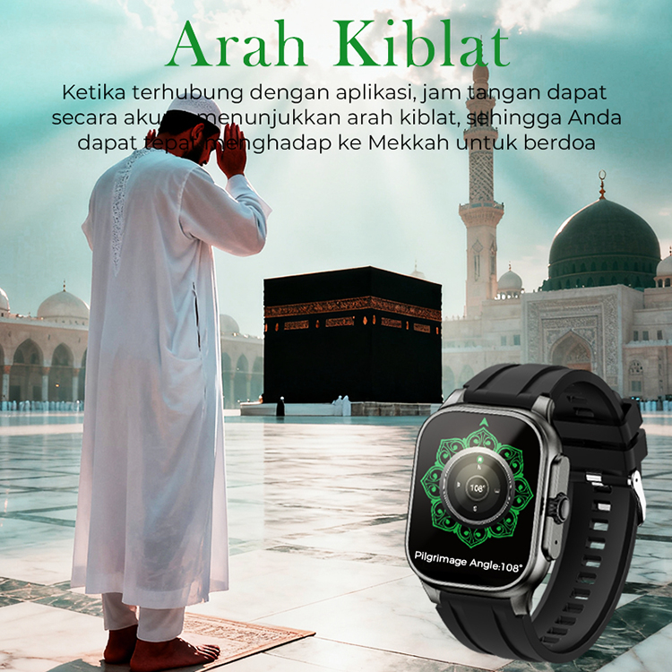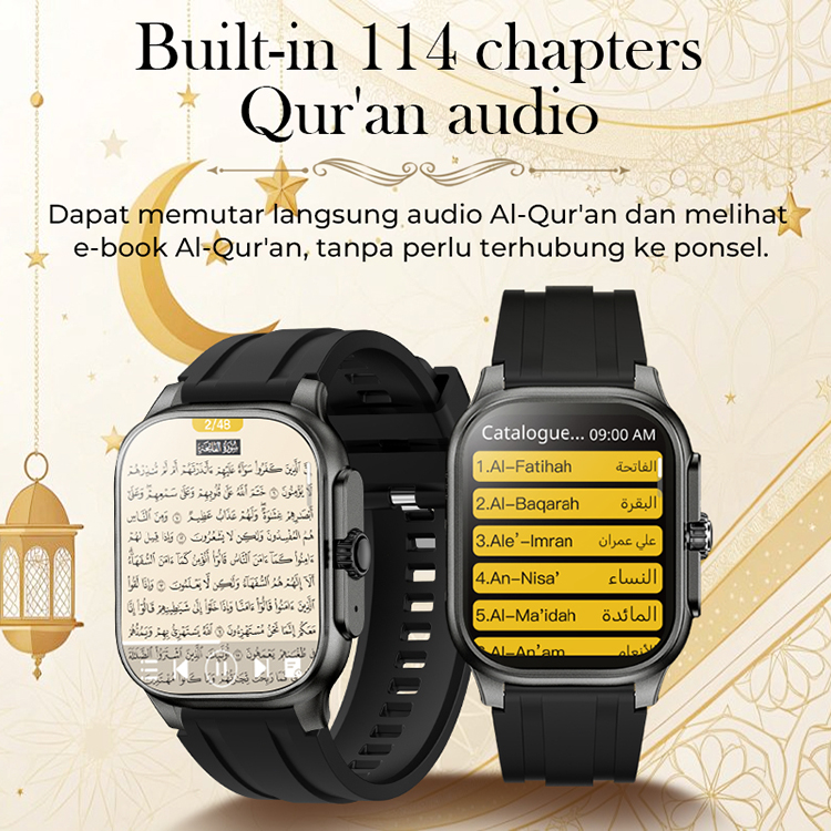 Fitfly Muslim Smartwatch 114 Surah Al-Qur'an Jam Tangan Pintar Pria Wanita dengan Adzan Reminder Al-Qur'an Tasbih Qiblat