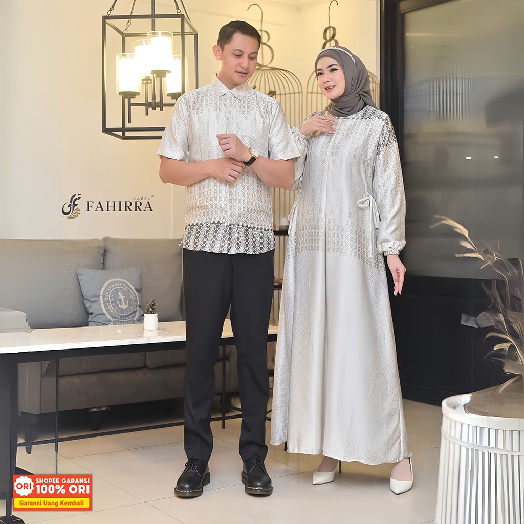 DP 0 Couple Dress MALIKA Bahan Silk Premium Set kemeja dan Gamis Couple Pesta Kondangan Jumbo Terbaru