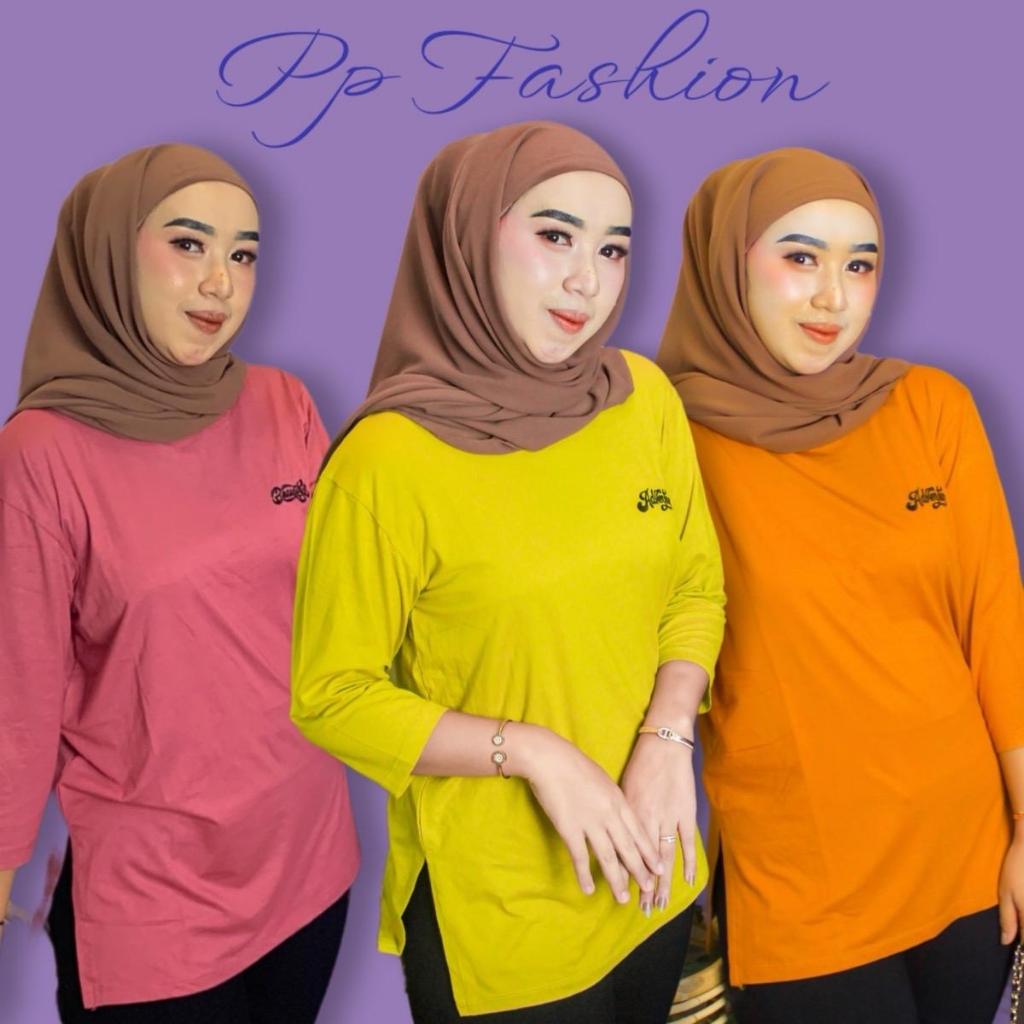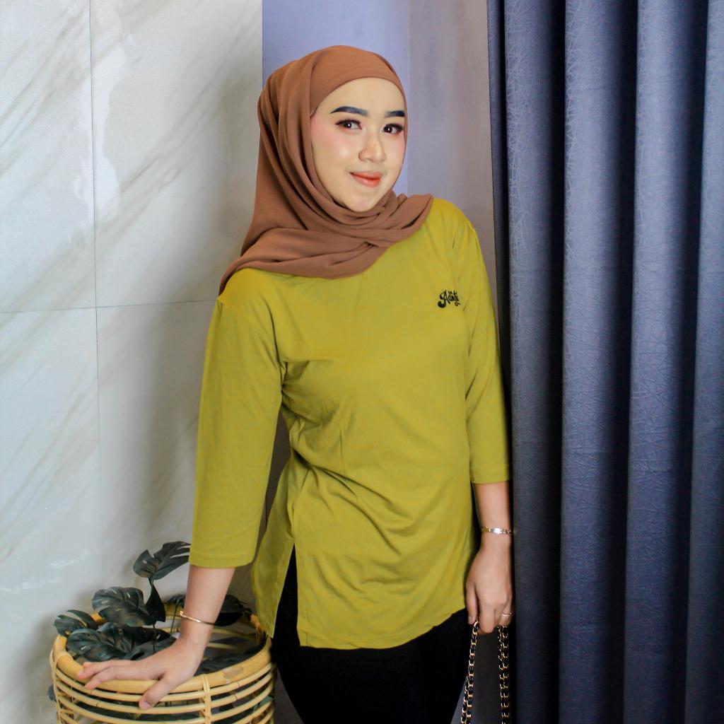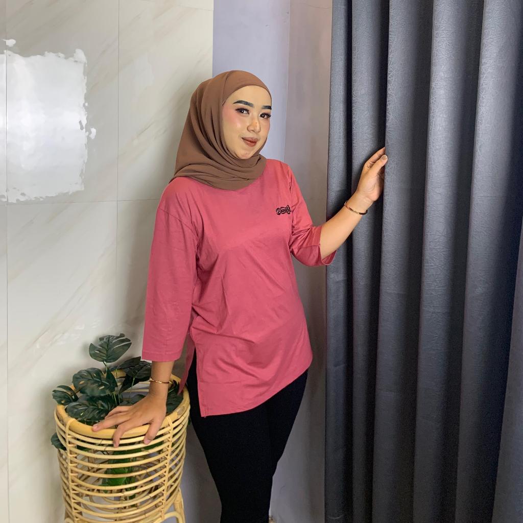 Kaos Oversize Wanita High Slit Spandek Rayon Premium T-Shirt Oversize Baju Panjang Kerah Oblong Nyaman Belah Samping Mot