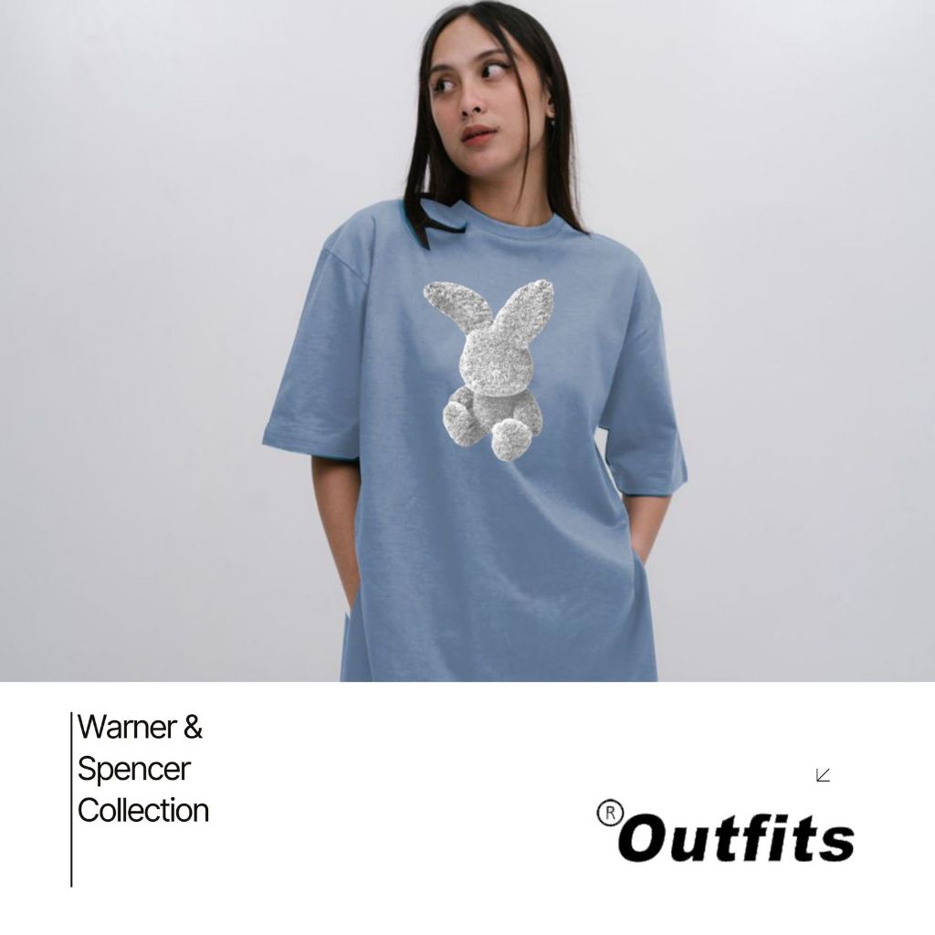 OUTFITSQU - KAOS TSHIRT OVERSIZE ATASAN WANITA HIGH SLIT LENGAN PENDEK BUNNY DOLL COTTON COMBED 20S