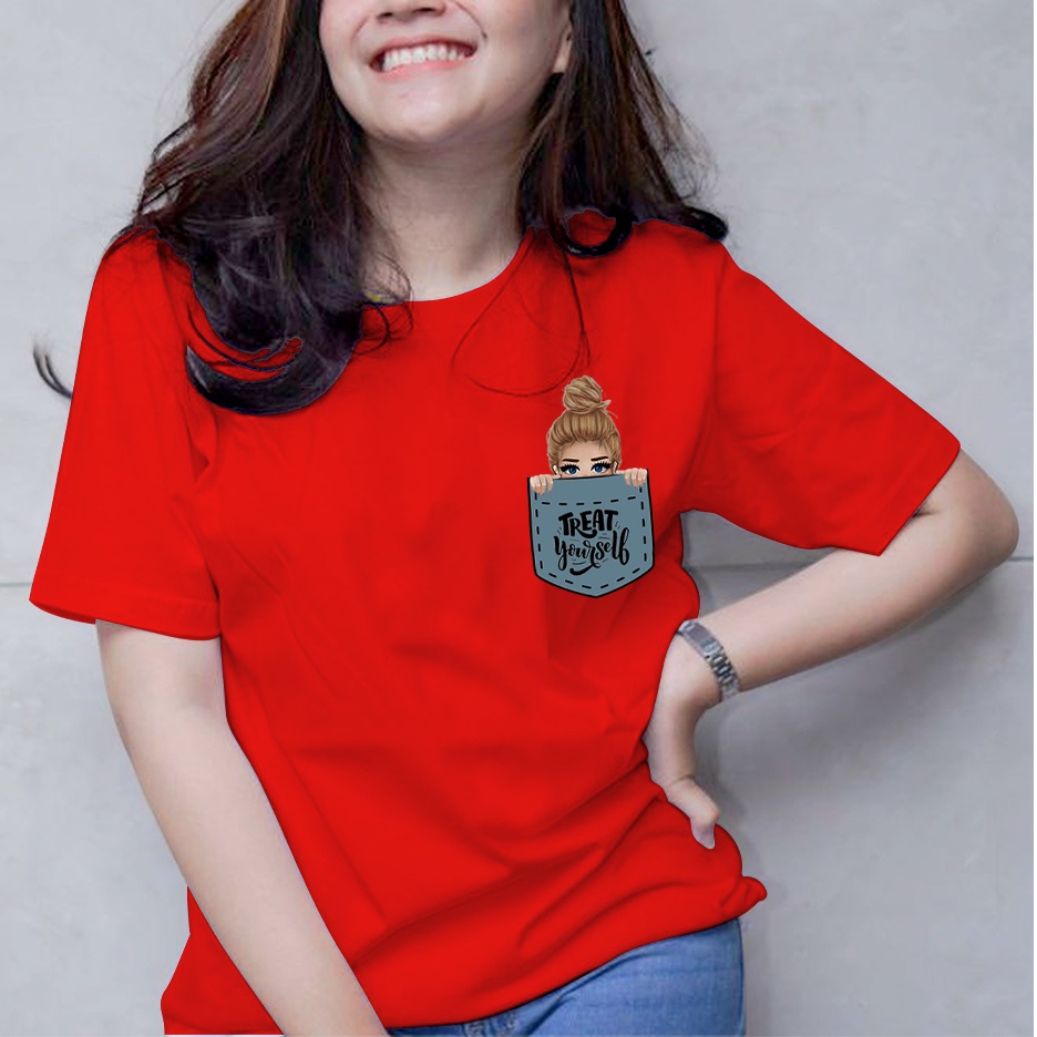 Kaos wanita/Cewek Treat yourself Baju Cewek Lengan Pendek T shirt Wanita model terbaru