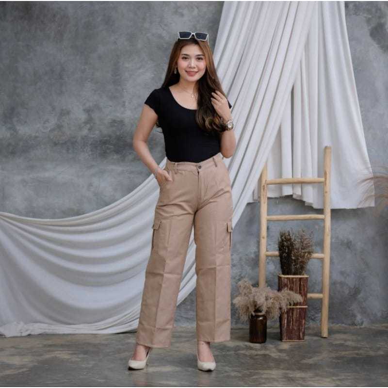 Cargo Katun Twill Combet Street /Celana Wanita Hightwaist // Kulot Kargo Wanita Melar// Celana Jumbo