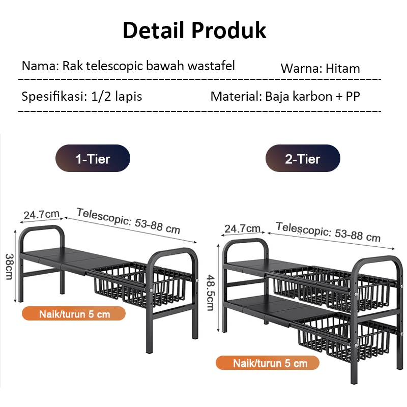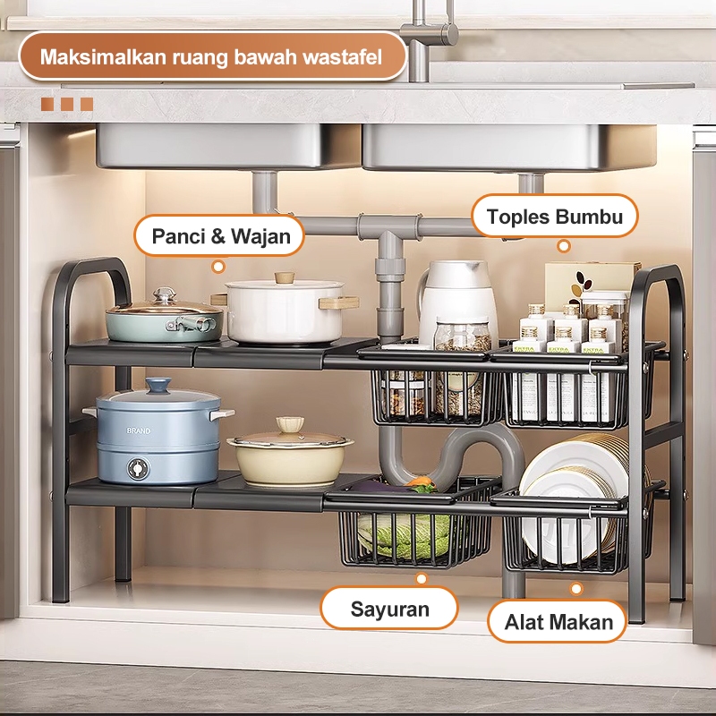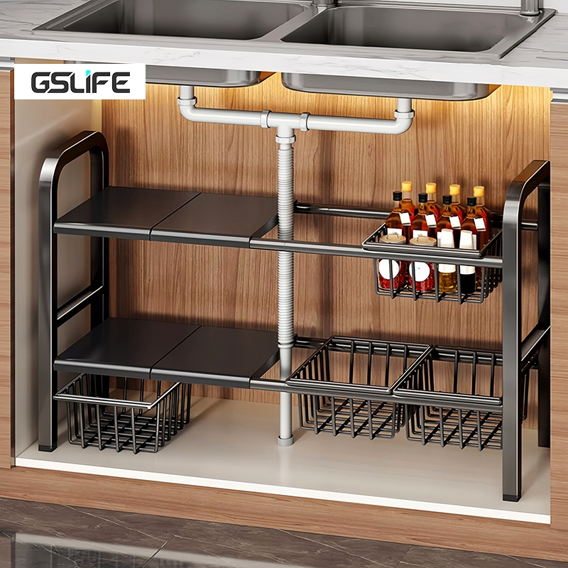Gslife Rak Panci Dapur Rak Panci Wastafel Dapur Di Bawah Dapur Rak Serbaguna Dapur Bawah Sinki Stainless Steel Yang Dapa