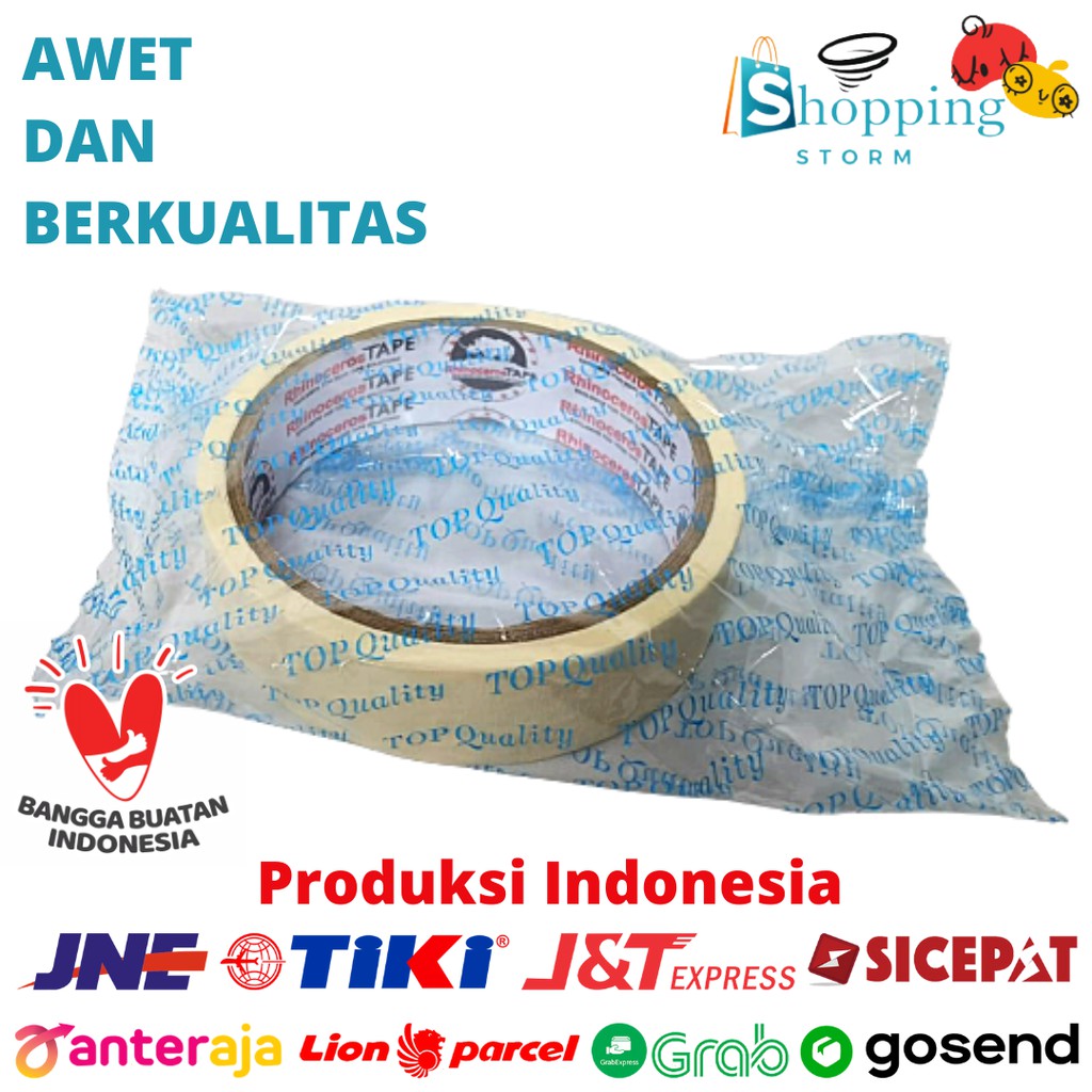 Lakban Kertas Masking Tape RHINOCEROS Tape Putih 24mm x 10m