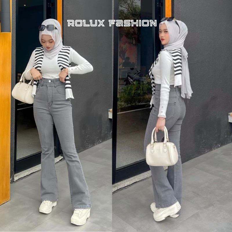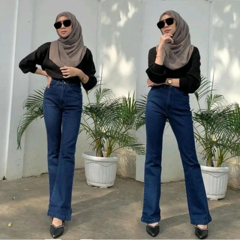 Celana Jeans Highwaist Cutbray Wanita Streath Premium