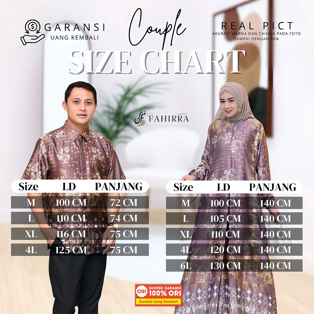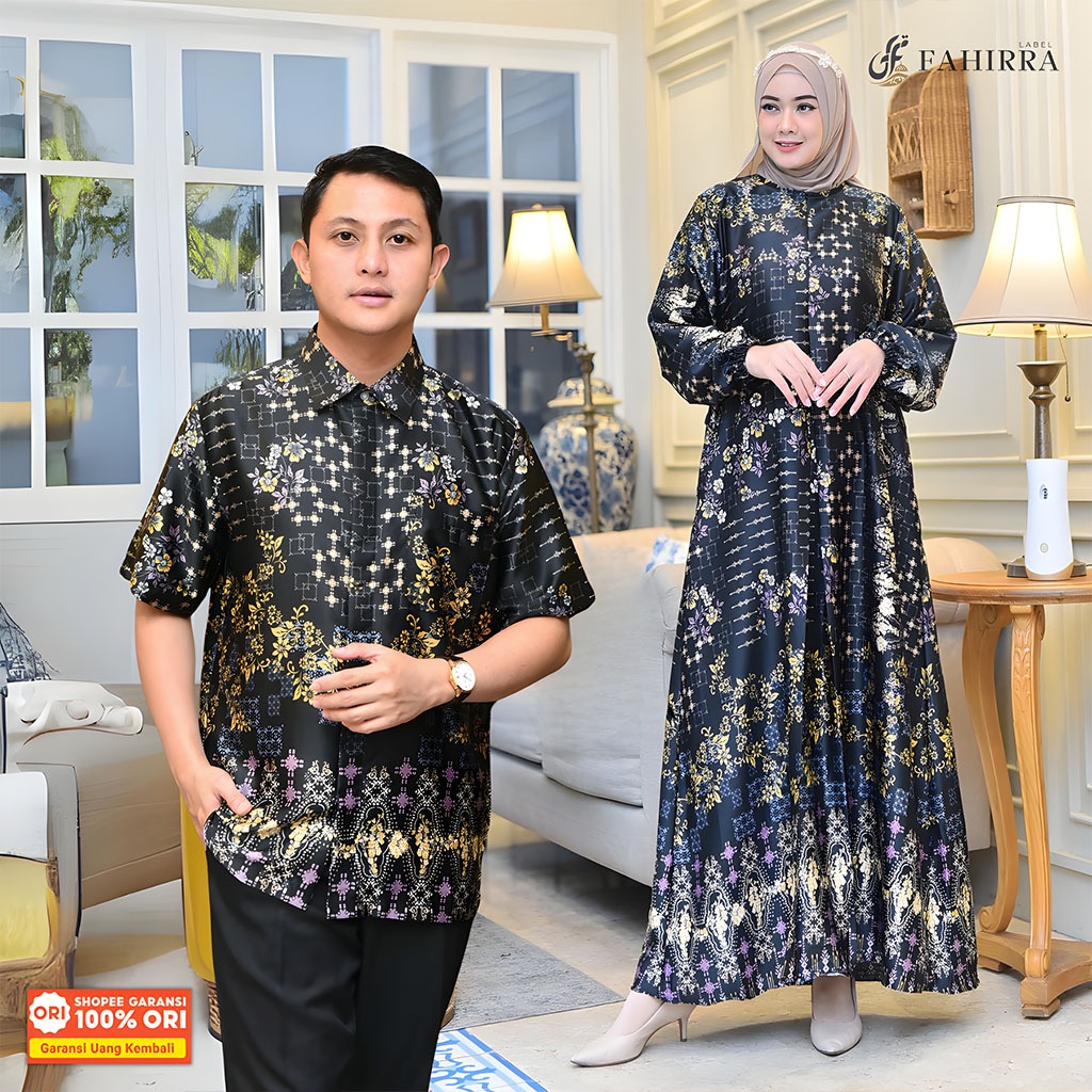DP 0 Couple Dress AQILLA Terbaru Bahan Silk Premium Motif Bunga Set Atasan Pria Couple Kondangan Terbaru