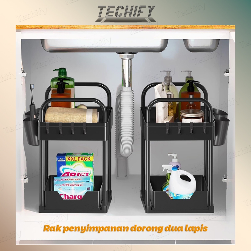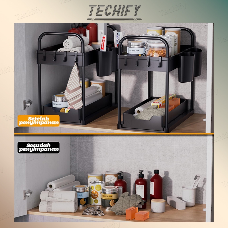 Rak Peralatan Makan Dua Tingkat, Rak Penyimpanan Bumbu, Rak Dapur, Rak Penyimpanan Dengan Laci Multifungsi
