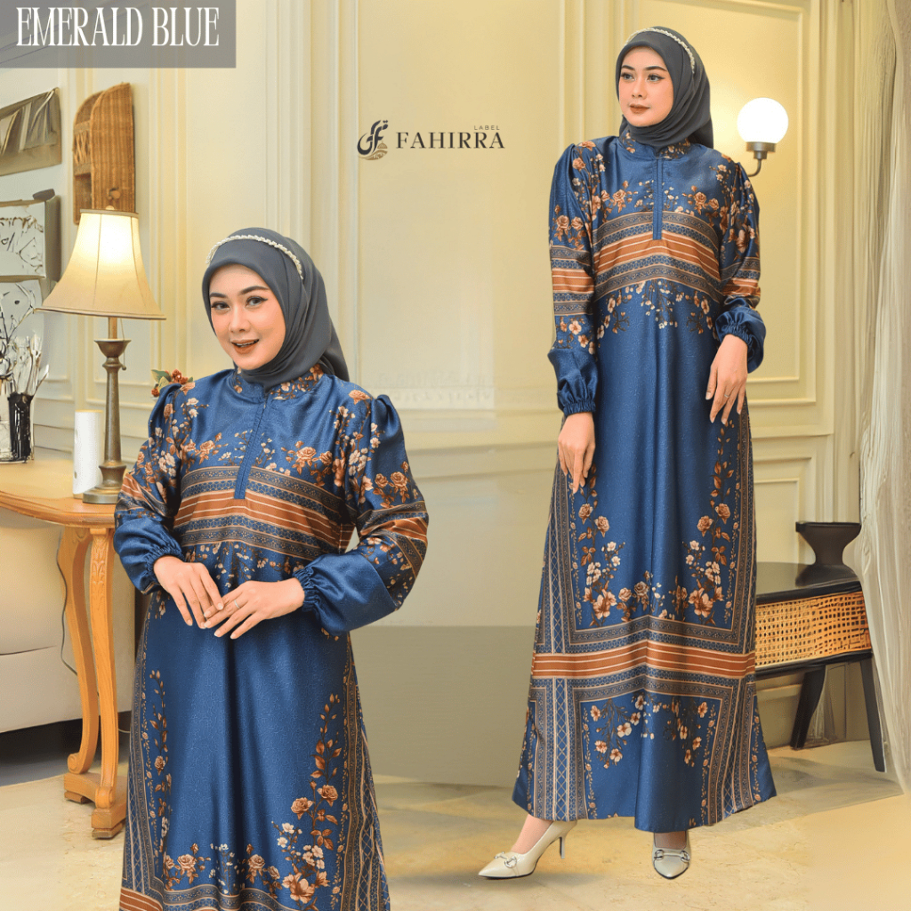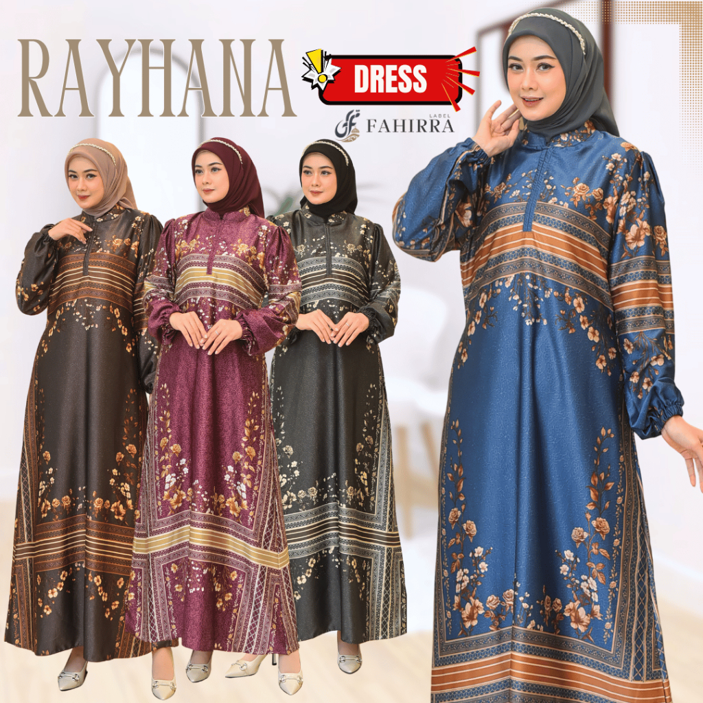 DP 0 Dress RAYHANA Bahan Silk Premium Gamis Kondangan Busui Friendly Motif Bunga Elegan Terbaru 2025