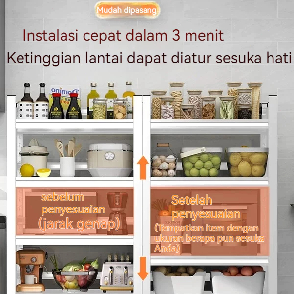 Rak Besi 5 Susun 120X40X200Cm | Rak Gudang & Dapur Anti Karat, Muat 200Kg, Tanpa Perakitan + Roda