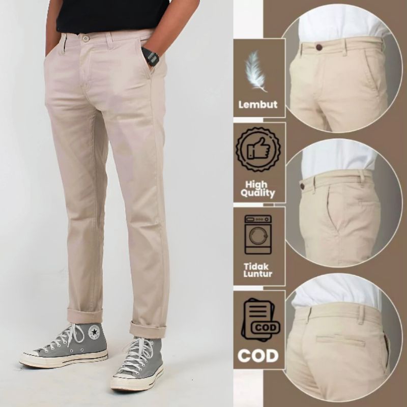 AN JEANS - Celana Chino Panjang Pria Slimfit Cowo Pants Chinos Pakaian Cowok Dewasa Bahan Stretch (Ukuran 28 - 39)