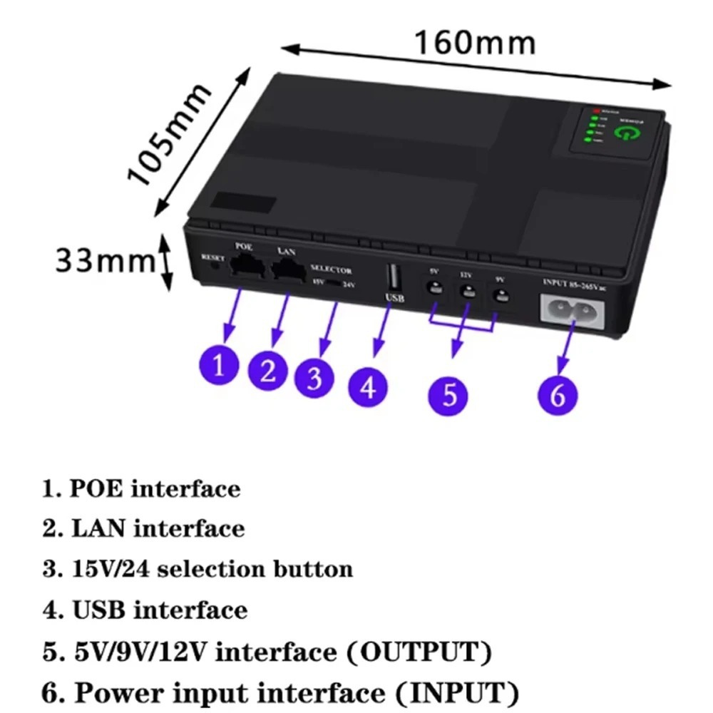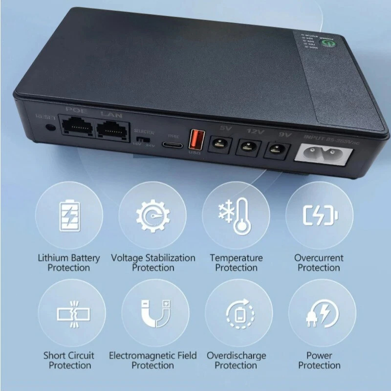 Mini UPS DC wer Supply 18W 10400mAh 5V 9V 12V Lithium rtable Modem Rer Modem CCTV Switch LAN IP Camera wer put USB UPS Rer Optical Cat Built-in Adapter Backup wer Supply Eu