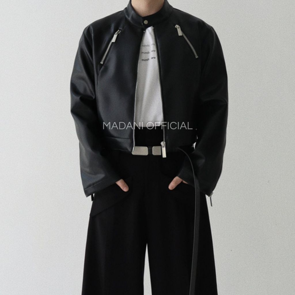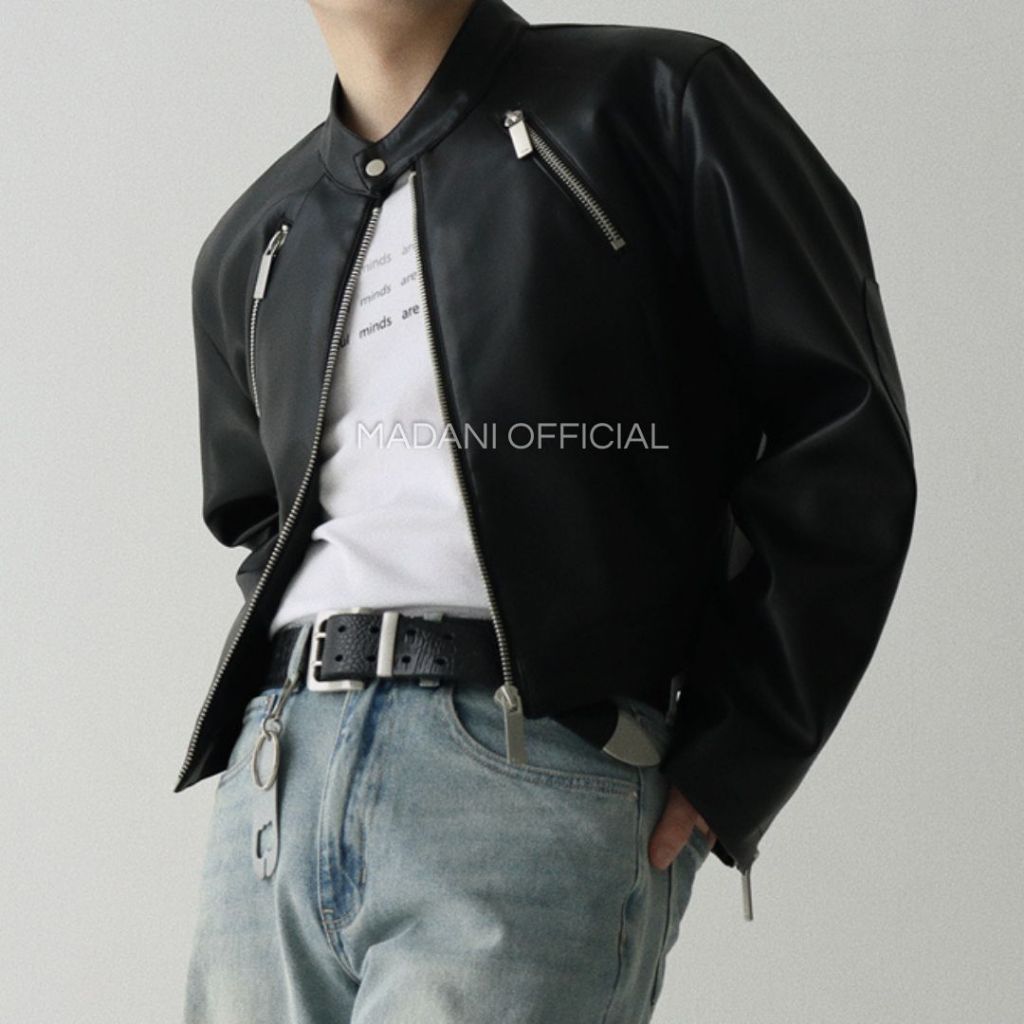 MDN x JERI - Jaket Crop Pria Semi Kulit Sintetis Viena PU Leather Jacket Vintage Midnight Collar Classic Top Style Biker