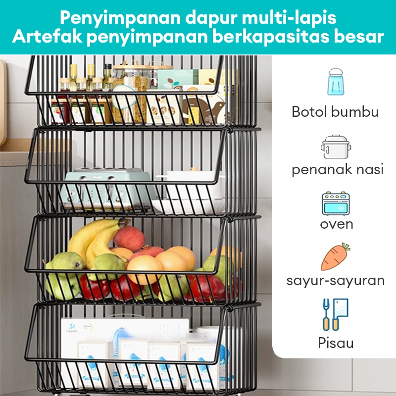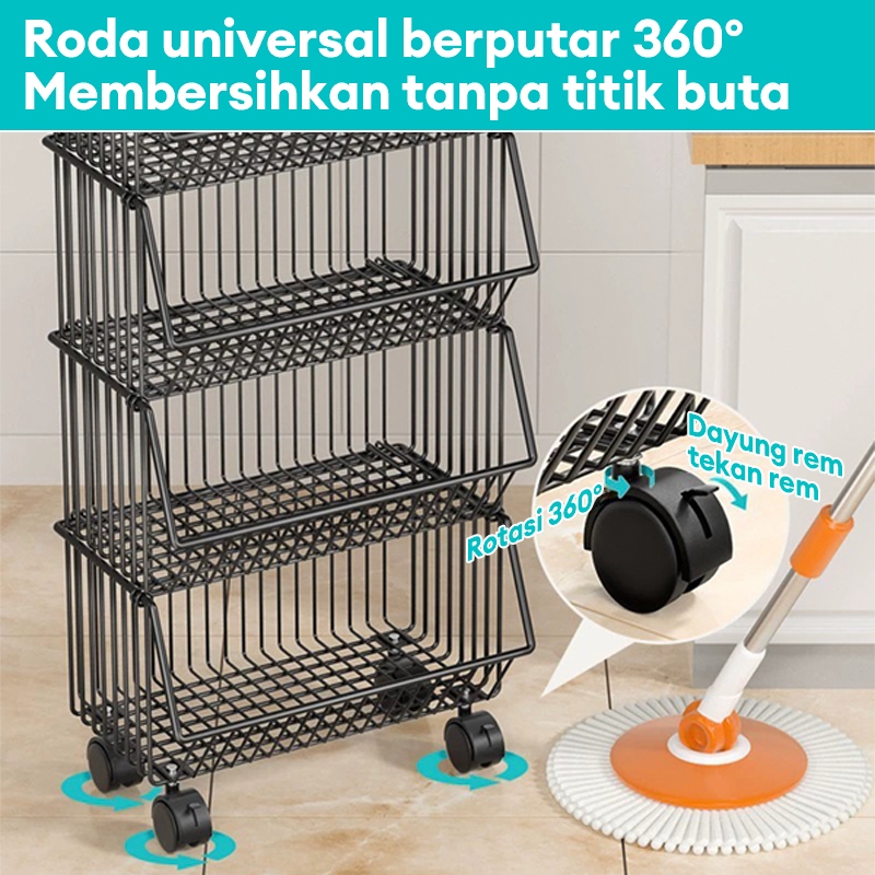 Rak Troli Susun Besi Rak R Tamu Rak Keranjang Buah Dan Sayur Rak Lantai Beroda Rak Penyimpanan Dapur