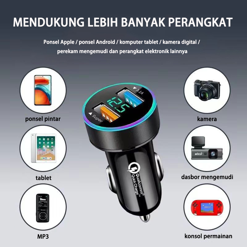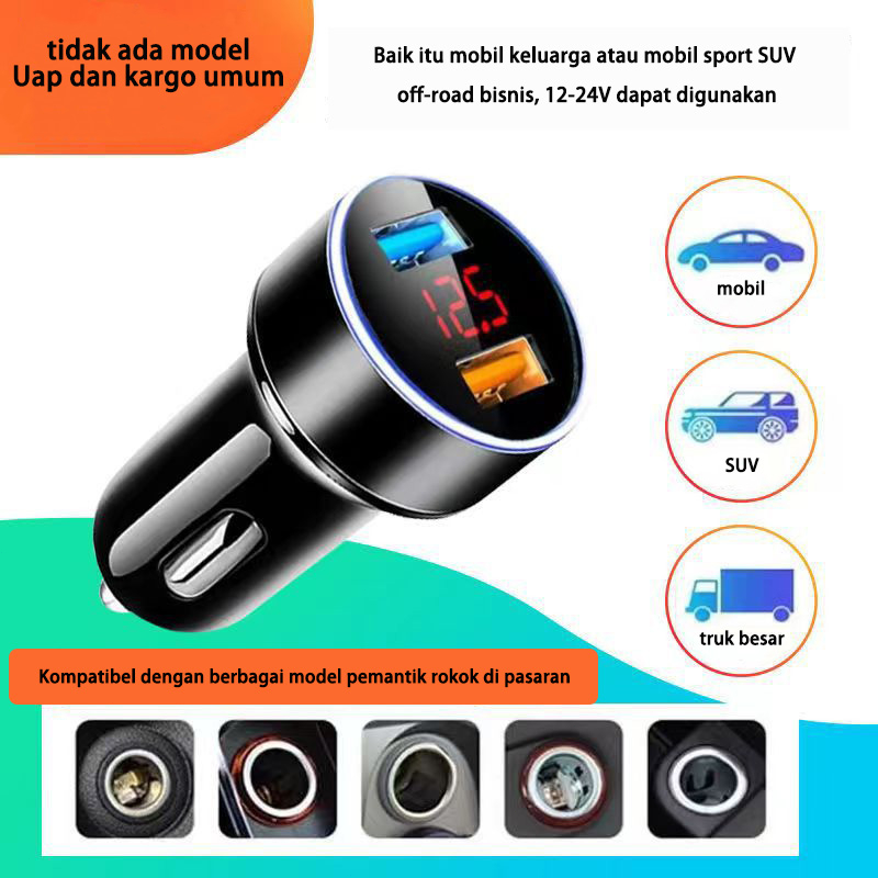 Charger Mobil Charger Motor 2 rts 3.1A 12V-24V put Fast Charging LED Display Voltmeter