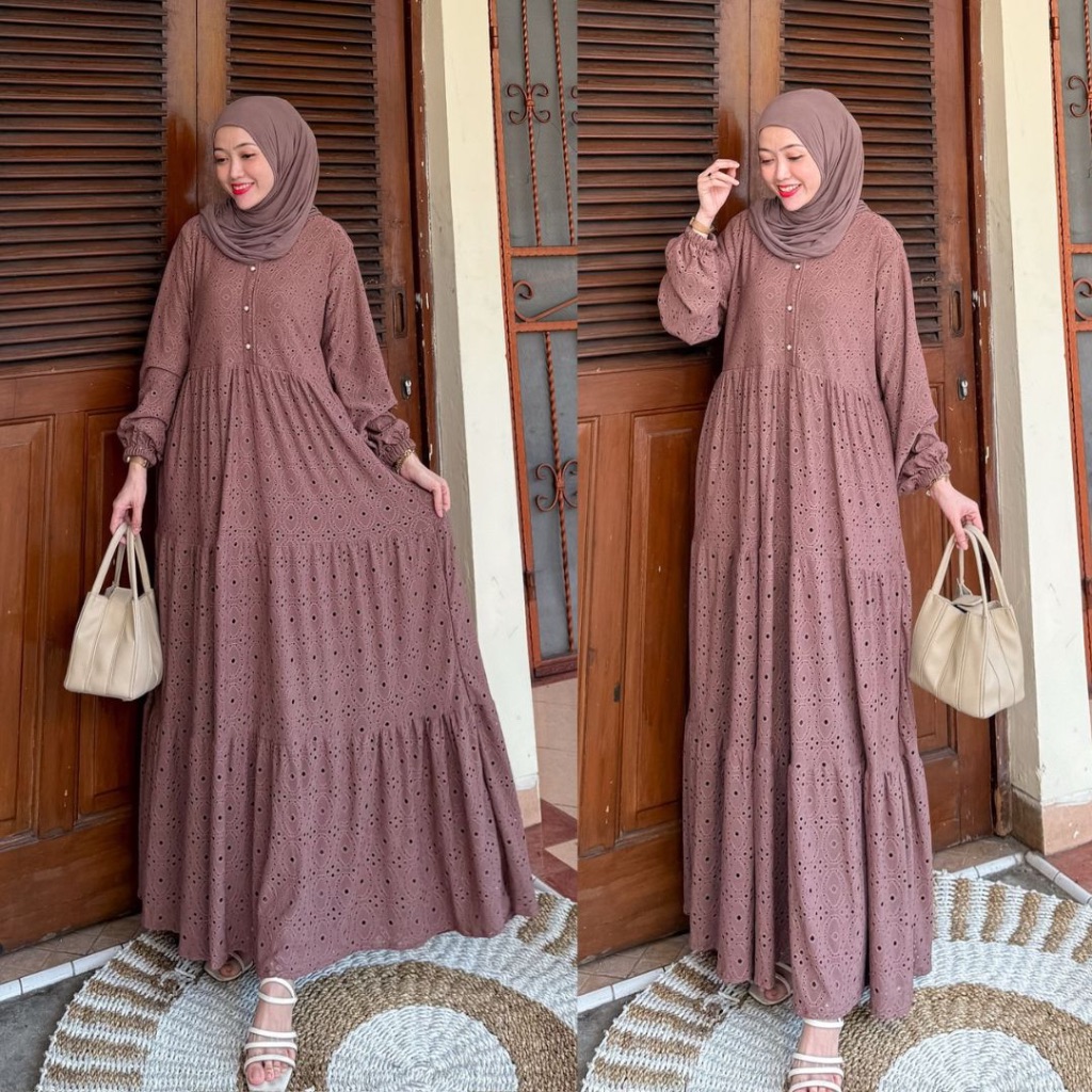 DP 0 Dharma Dress Otfit Kondangan Elegant Bridesmiad Knit Bordir Gamis Wanita Muslimah Baju Pesta Mewah Panjang Wudhu Umrah Manasik Maxii Dewas