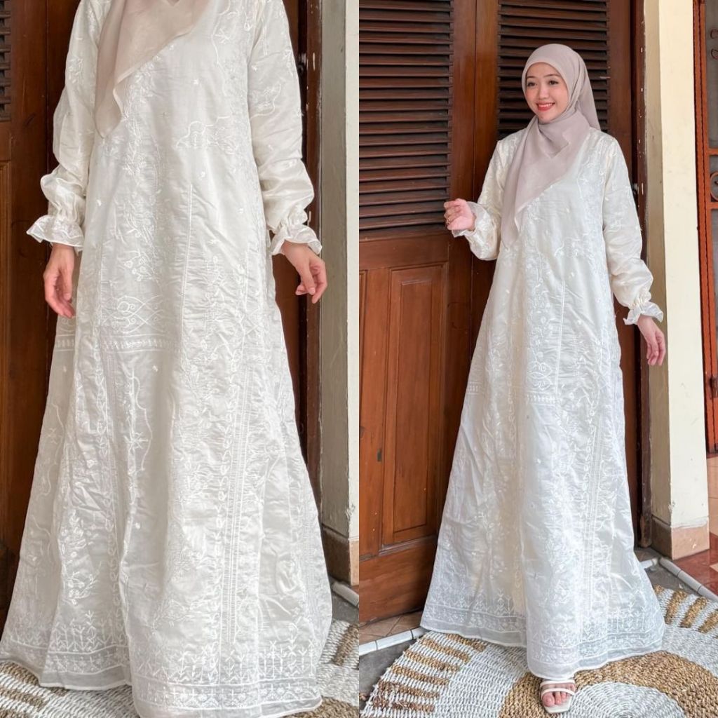 DP 0 Indira Gamis Mewah Raya Tancel Bordir Full Furing Dress Outfit Lebaran Kondangan Lebaran Baju Pesta Muslimah Dress Lembut Wudhu Wanita Ter