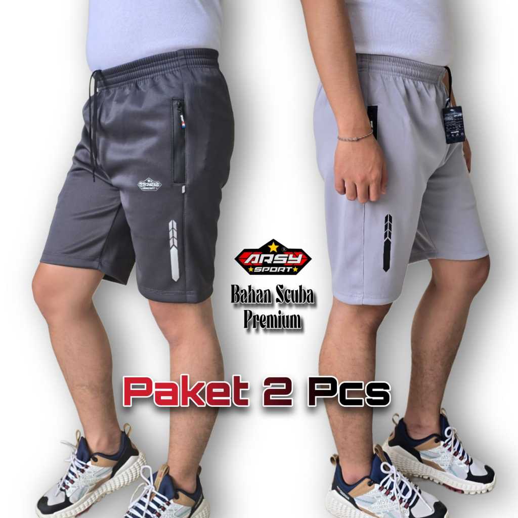 Arsy Sport - Paket 2 Pcs - Celana Running Pria Wanita Short Pant Gym SC003 - Bahan Scuba Elastic Adem Nyaman
