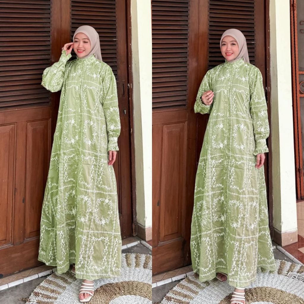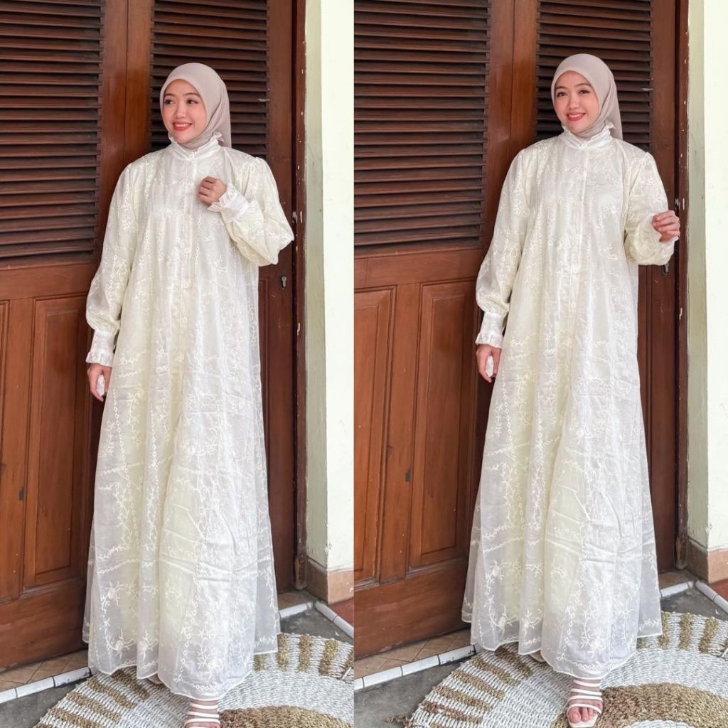 DP 0 Rossiana Dress Otfit Raya Kondangan Elegant Bridesmaid Tancel Bordir Full furing Gamis Wanita Muslimah Baju Pesta Mewah Panjang Wudhu Maxi