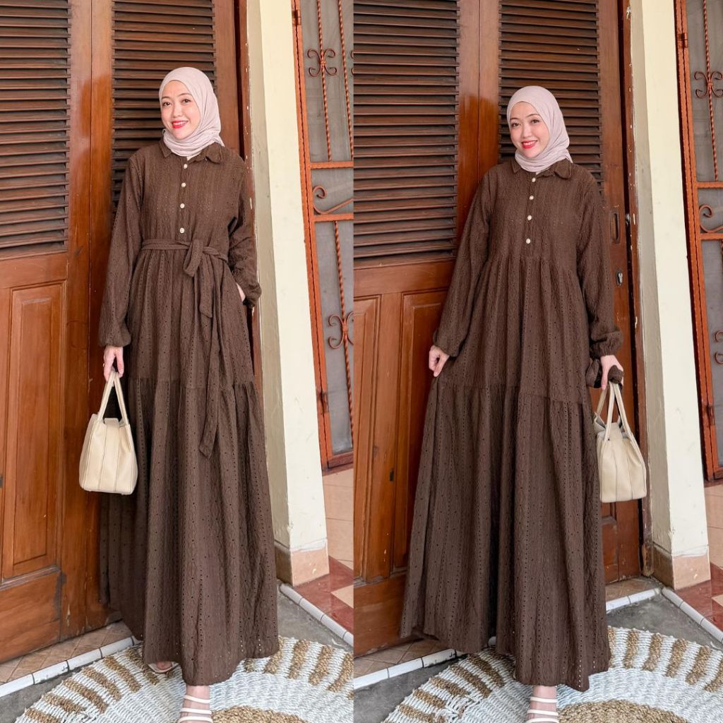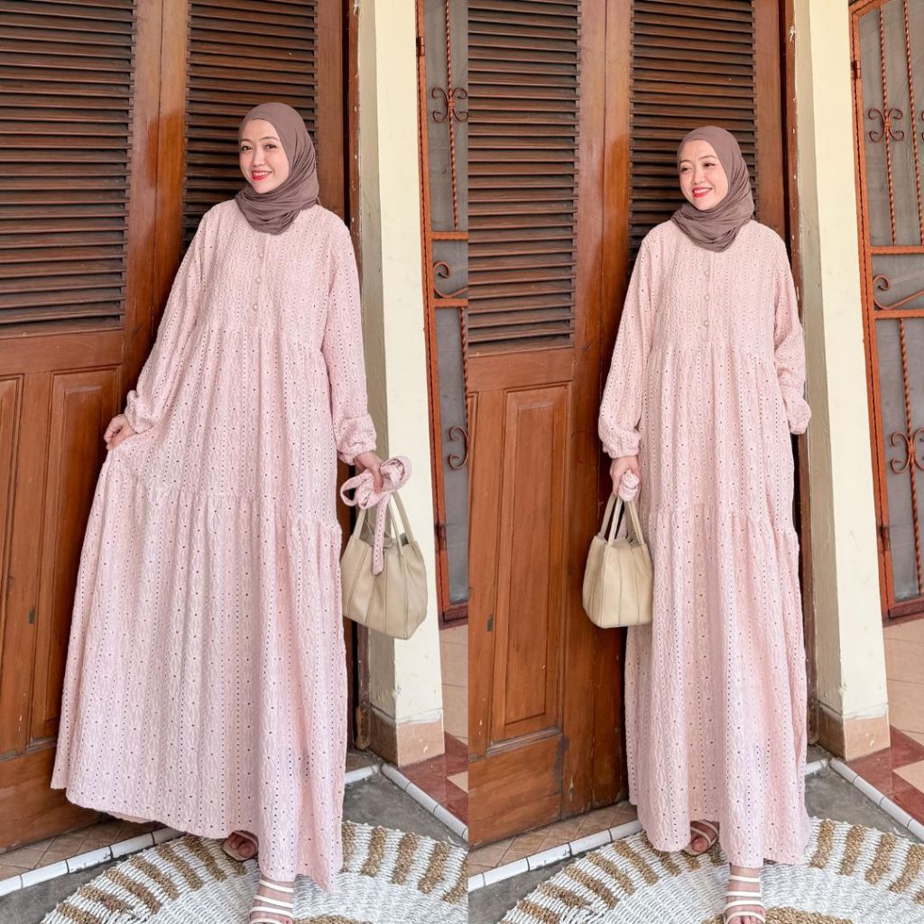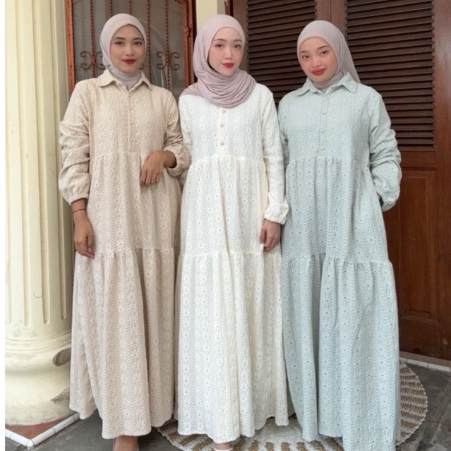DP 0 Mikhaila Dress Busui Brukat Bordit Gamis Lebaran Wanita Baju Daily Pesta Muslimah Perempuan Kondangan Lembut Kancing Wudhu Panjang Dewasa