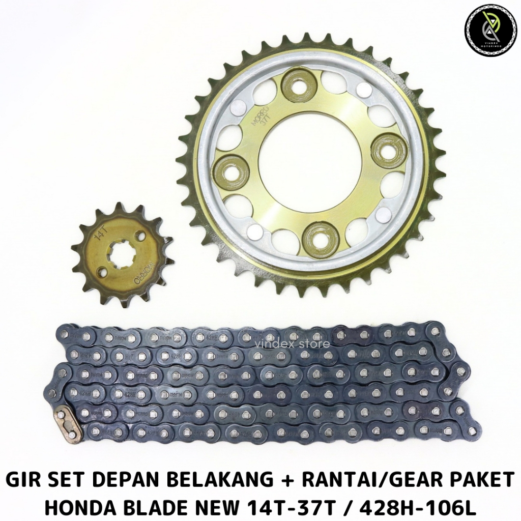GEAR PAKET GIR SET RANTAI BLADE NEW REVO ABSOLUTE ABS REVO FIT REVO FI 14T-37T/428H-106L MORRO