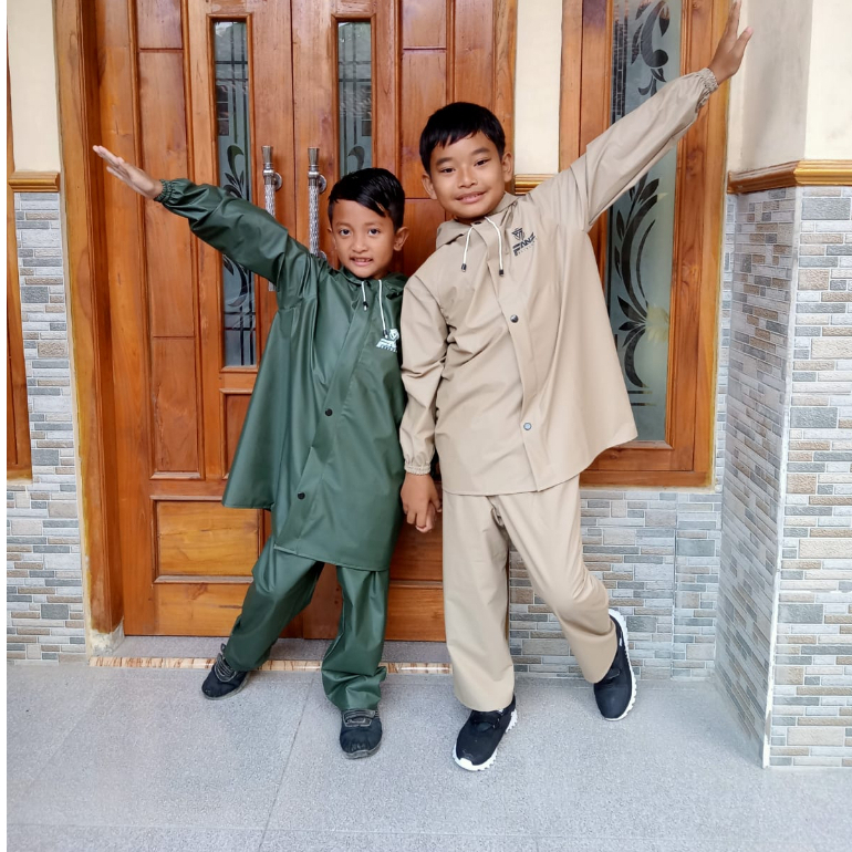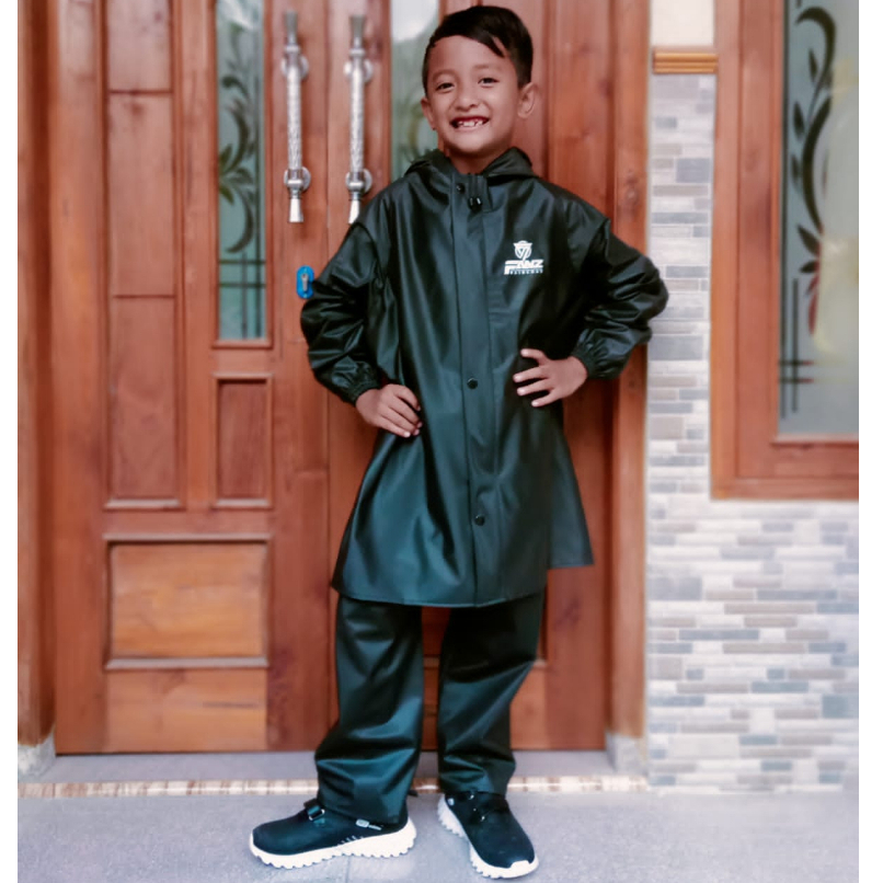 Jas Hujan Mantel Anak Anti Rembes Setelan Celana Bahan Pvc Karet Tebal Kuat Elastis Waterproof