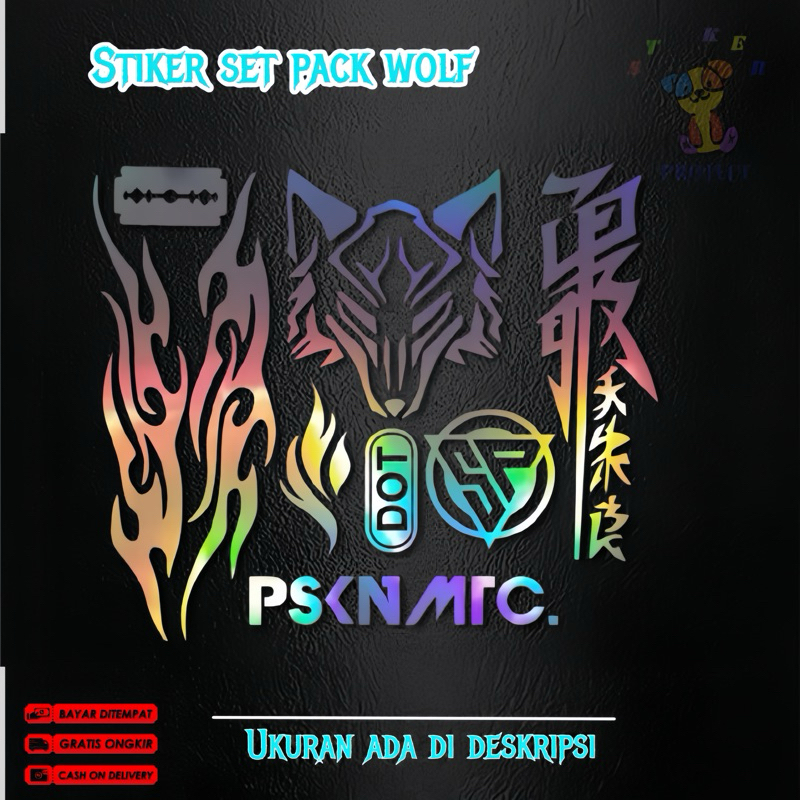 Stiker set pack wolf logo sp psknmtc kanji set cutting sticker motor dan mobil