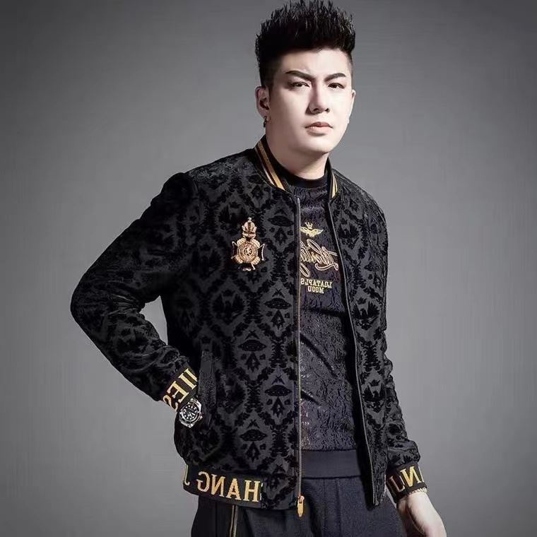 【Hot Sale】Men's jacket trendy brand new embroidered jacket outerwear slim fitting jacquard jacket