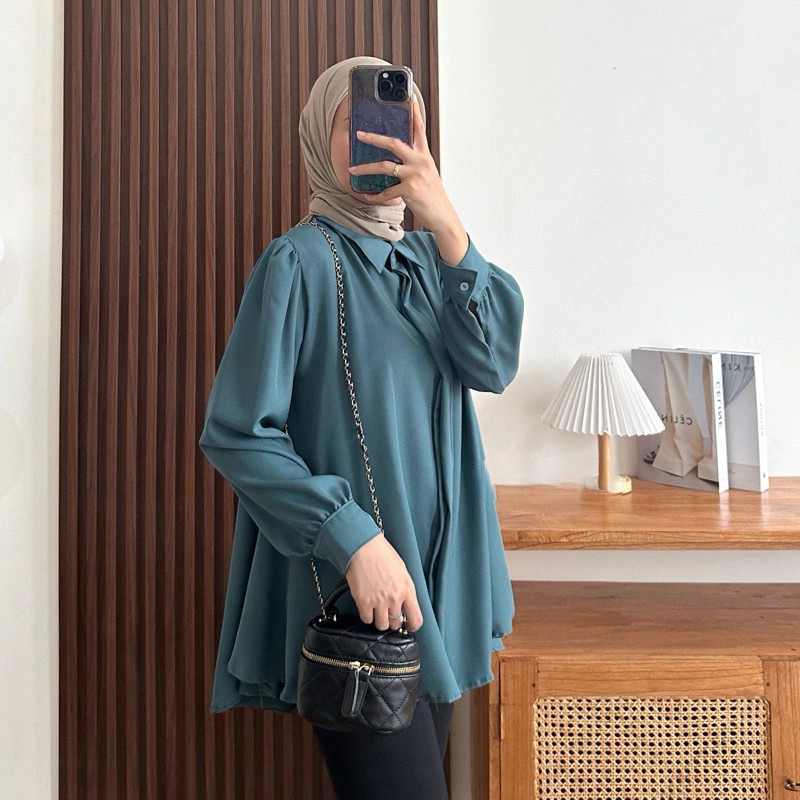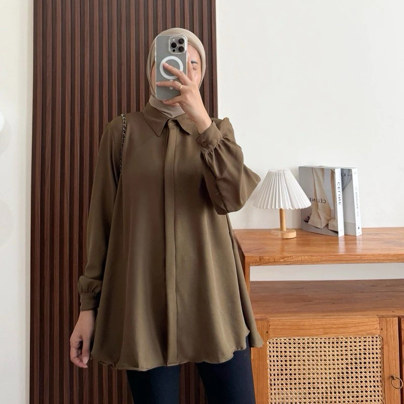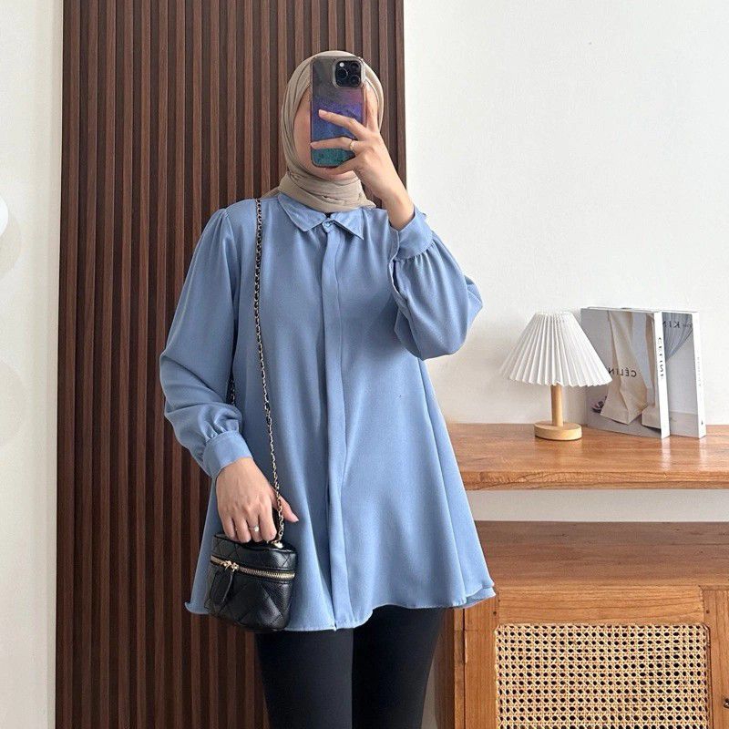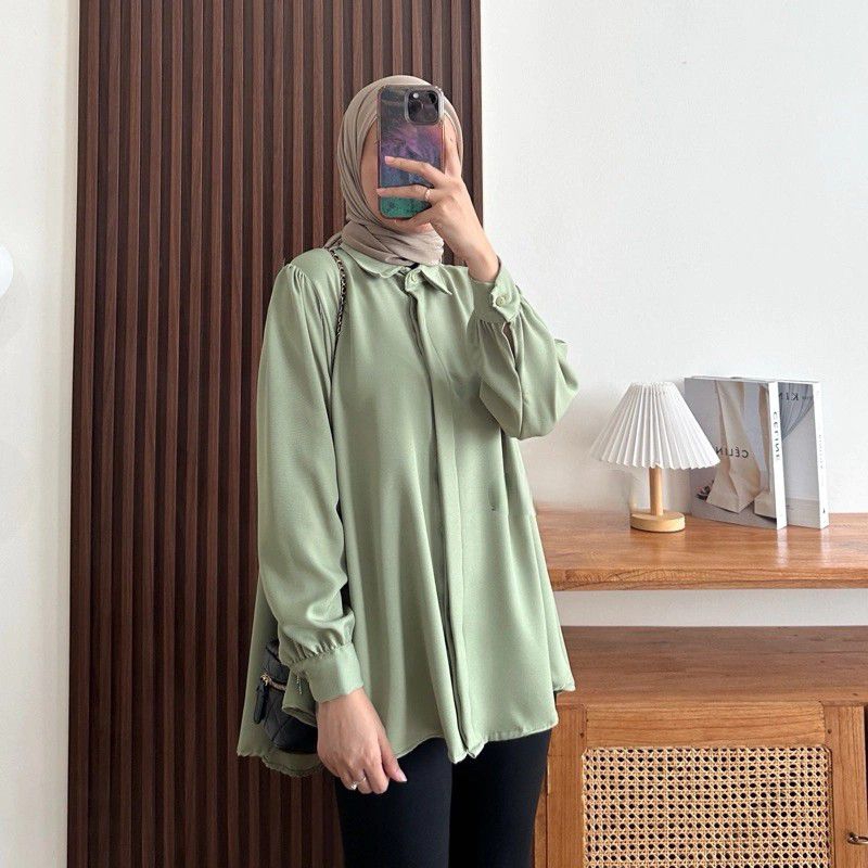 Kinka Shakilla Blouse Kemeja Basic Wanita Polos Baju Atasan Kemeja Wanita Muslim Lengan Panjang
