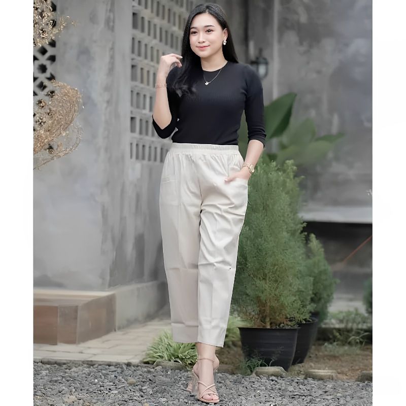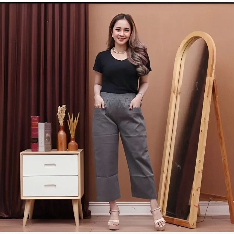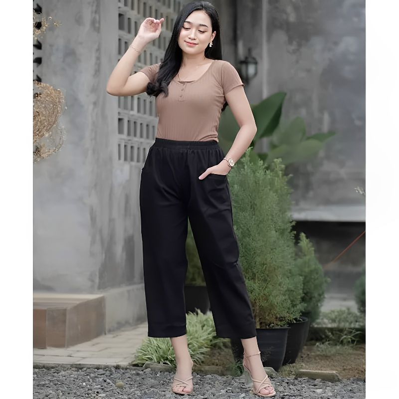 Ameena - Celana Kulot 7/8 Cotton Twill | Celana Highwaist Cullot Kantor Wanita | Celana Kulot Jumbo Wide Leg Terlaris