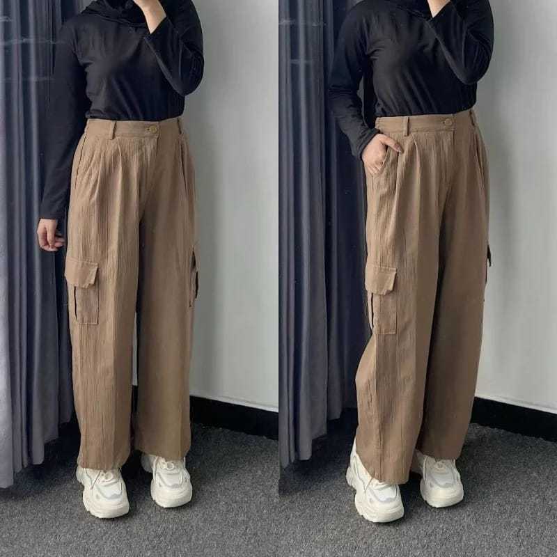 Celana Cargo Wanita Highwaist Premium Jumbo Pinggang Karet CARGO PANTS WANITA AMERICAN DRILL