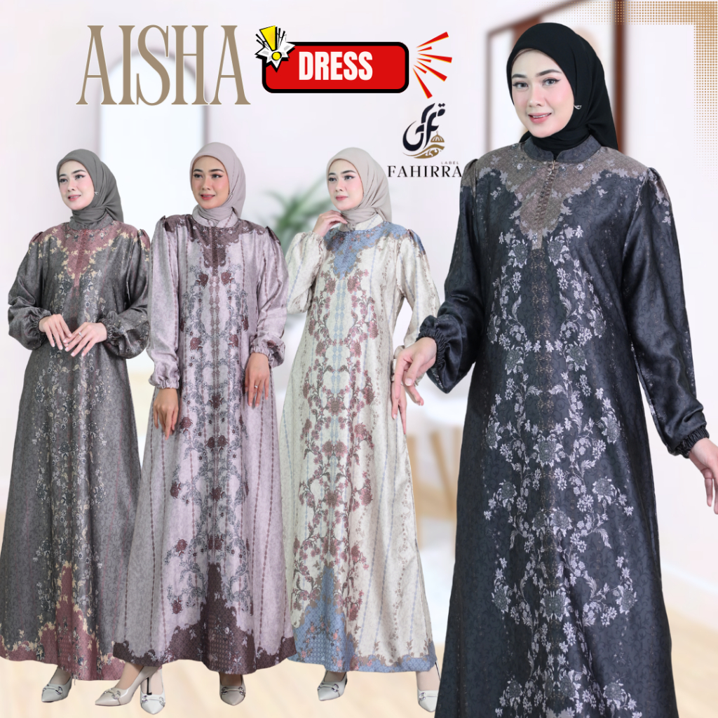 DP 0 Dress AISHA Bahan Silk Premium Gamis Motif Bunga Elegan Busui Friendly Terbaru 2025