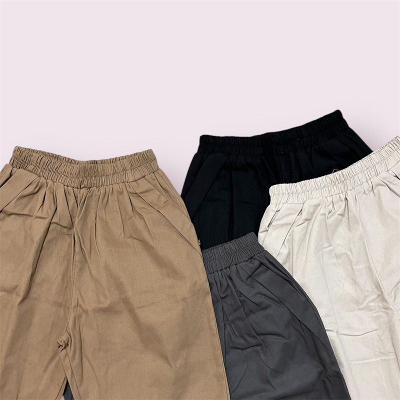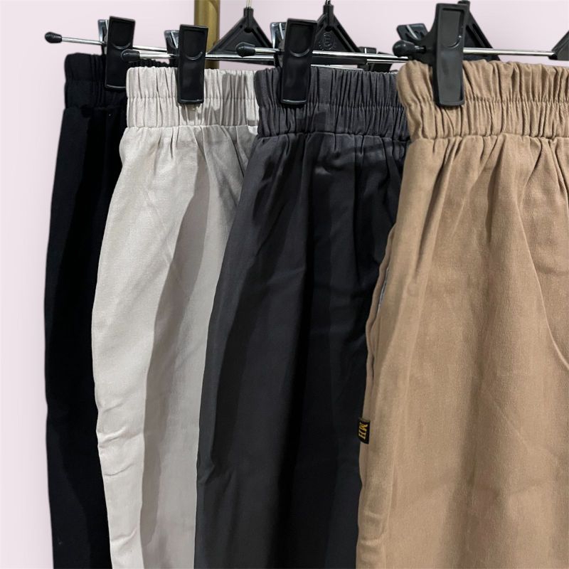 Kino Basic Pants Celana Baggy Pants Wanita Full Karet Celana katun Celana Chino Stretch MH