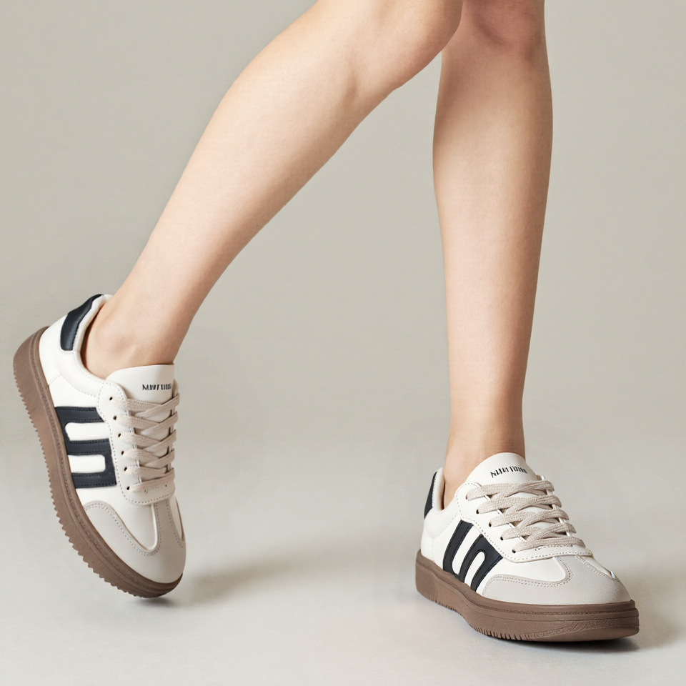Sepatu Wanita Sam-ba Forrest Gump Bergaya Kasual Nyaman Baru Hitam/Krem ST085