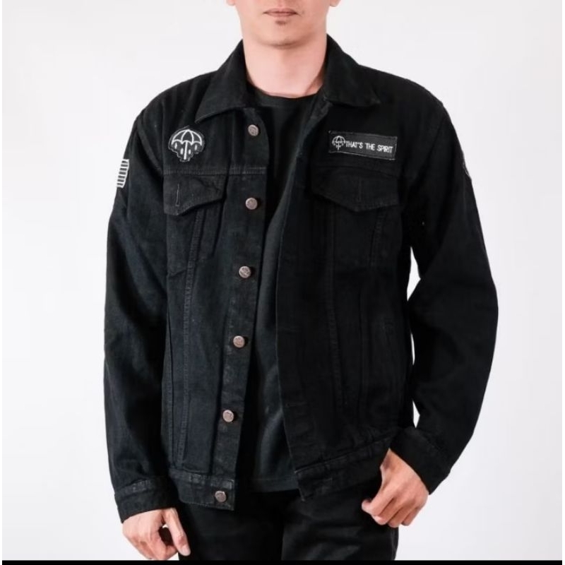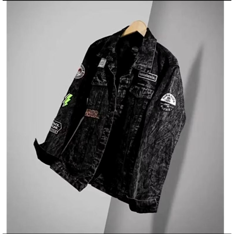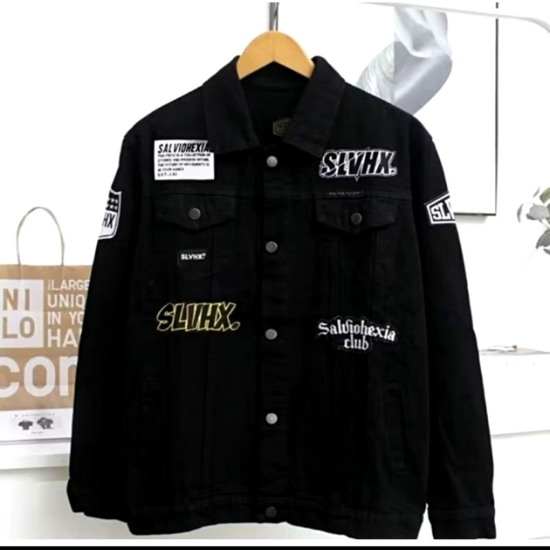 Jaket Jeans Pria Bordir Salviohexia Jaket Denim Cowok Emblem M-XXXL Oversize Terbaru Unisex Distro