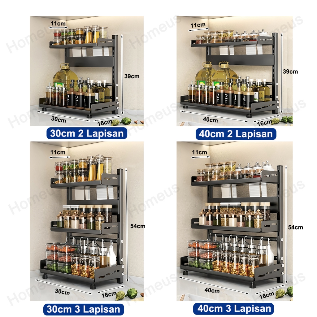 Homeus Rak Bumbu Dapur Stainless Steel Rak Bumbu Rak Dapur Serbaguna Rak Botol Bumbu (2/3 Tingkat)