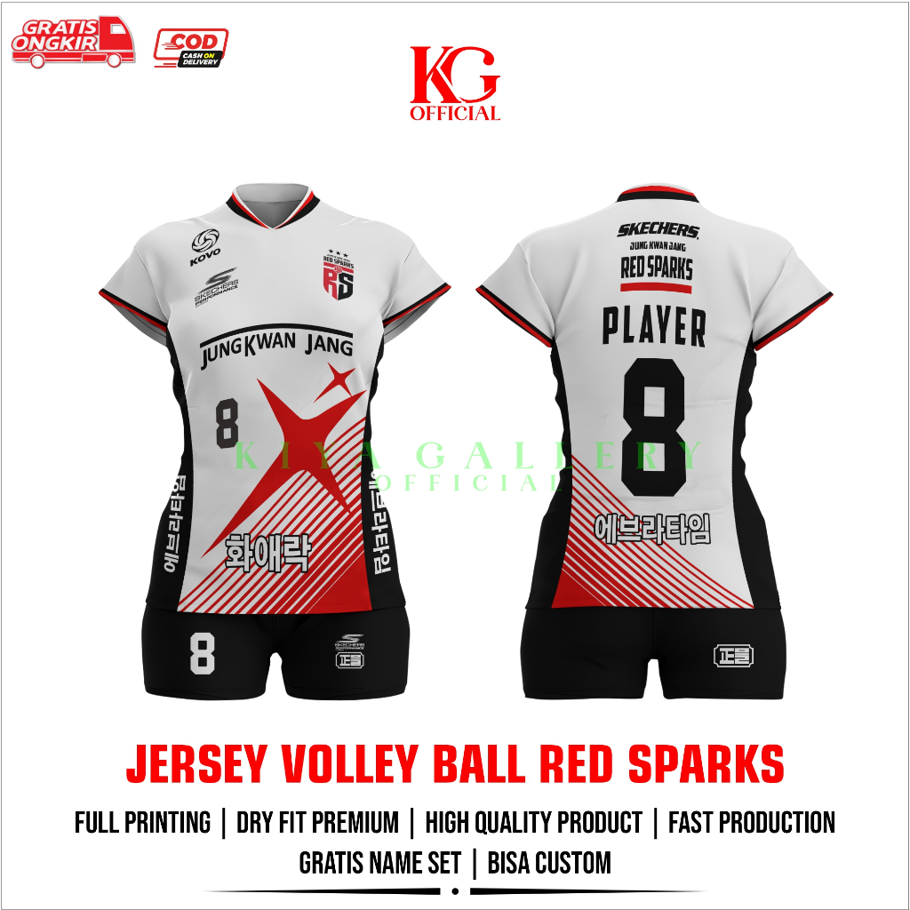 JERSEY VOLI WANITA RED SPARKS FULL PRINTING GRATIS CUSTOM NAMA DAN NOMOR