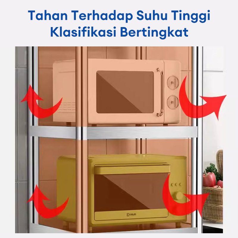 Rak Microwave Rak Dapu Stainless Steel Rak Oven Rak Penyimpanan Multi-Fungsi Rak Pot Rak Kompor