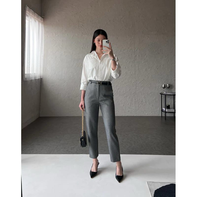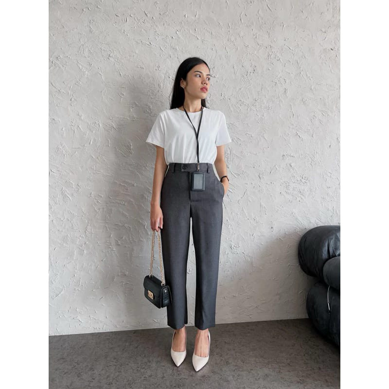 Alexa Pants Celana Kerja Wanita Kantor Highwaist Pinggang Karet Belakang Bahan Semiwool Premium | Formal Daily Adem Nyam