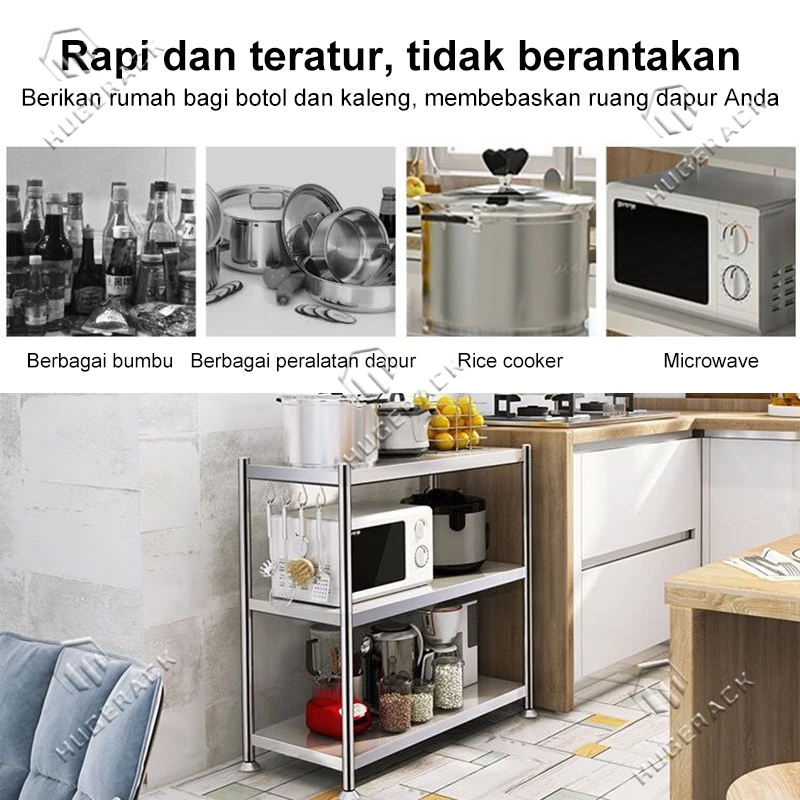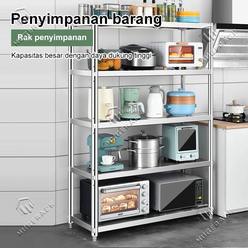 Rak Dapur Stainless Steel Rak 5 Susun Rak Penyimpanan Tempat Serbaguna 5 Susun Rak Besi Rak Microwave Oven