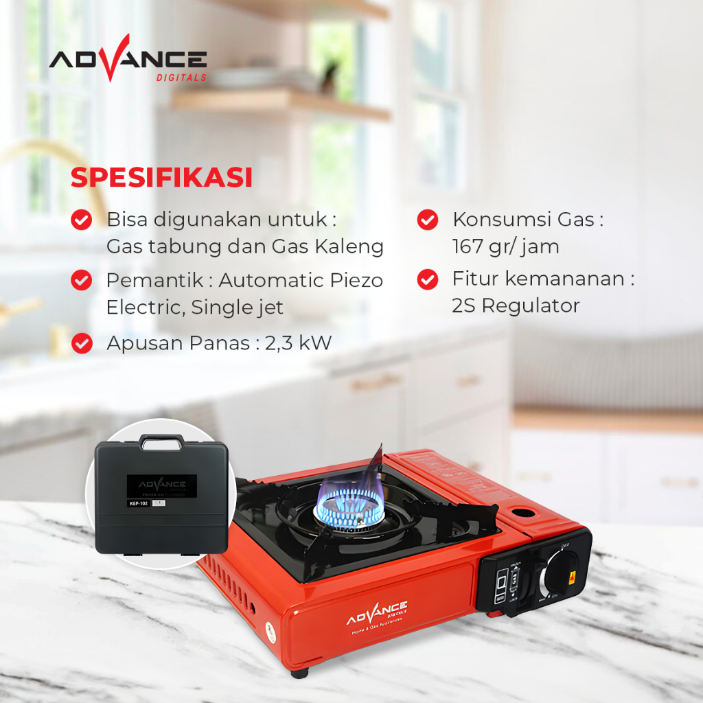 Kompor Portable Advance KGP 102 Kompor 2 Fungsi Gas Tabung & Kaleng