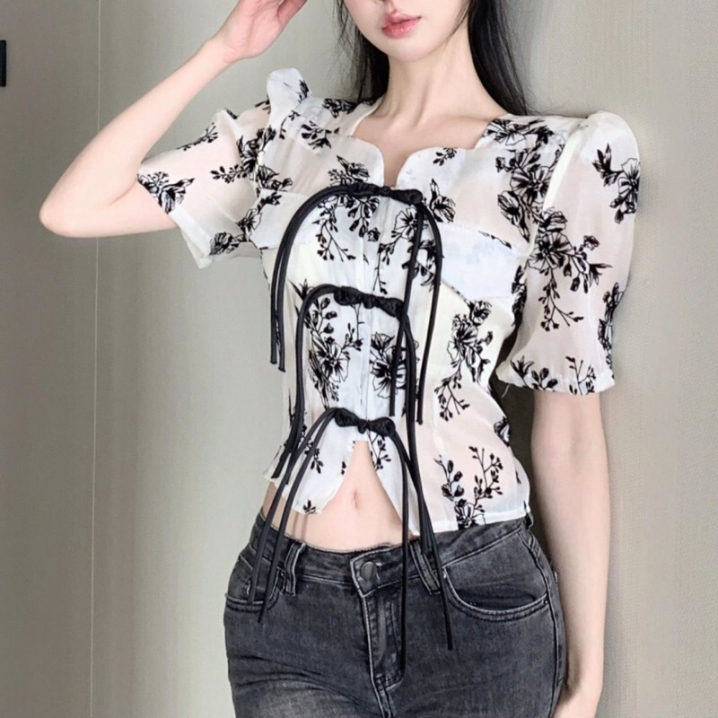 TM 0287 Blouse CNY Shuqi cheongsam cropped top import