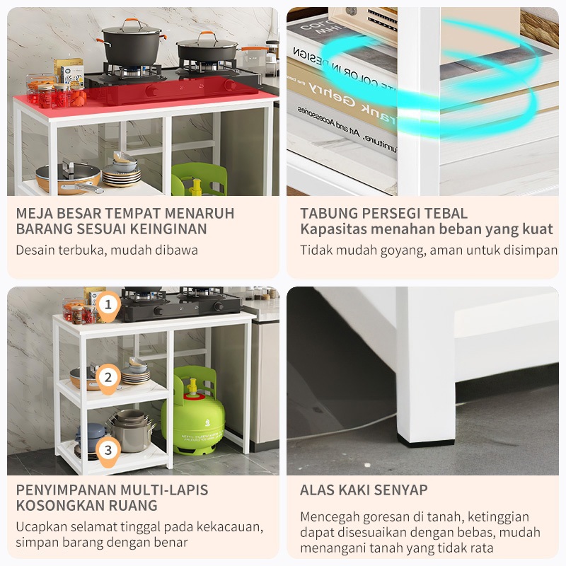 Meja Kompor Gas Dapur Serbaguna Rak Penyimpanan Rak Bumbu Rak Panci Meja Dapur Rak Oven Rak Microwave Rak Piring Rak Ko