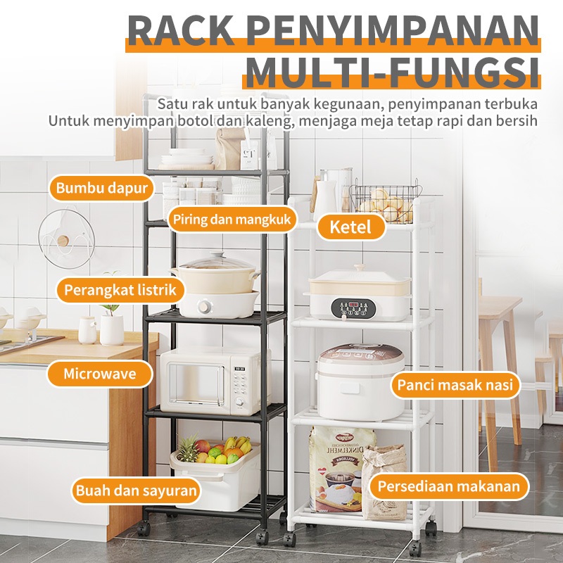 Rak Penyimpanan 5 Tingkat Hitam Silver Rak Dapur Rak Dapur Susun Rak Bumbu Rak Oven Rak Multifungsi Rak Penyimpanan Rak