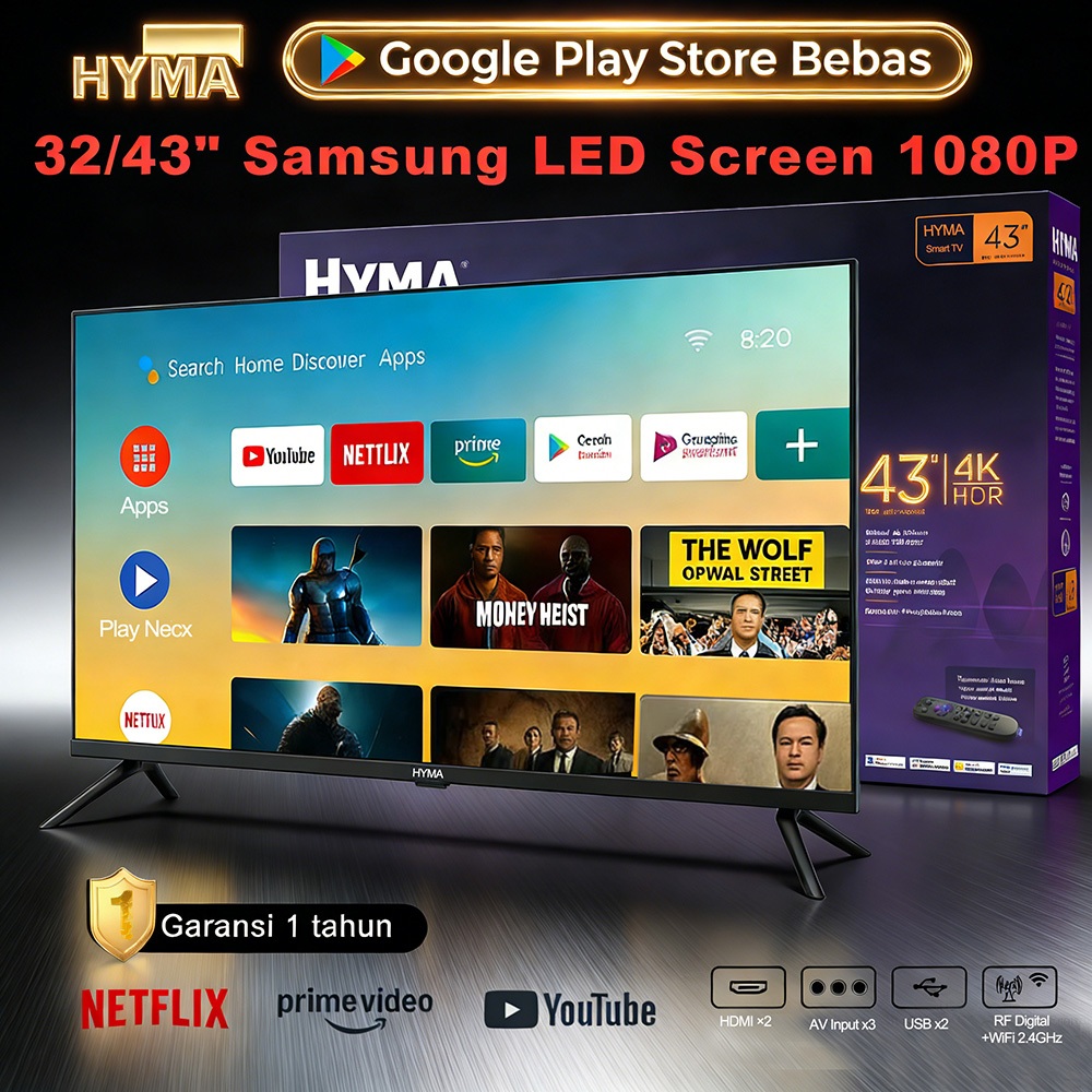HYMA Smart TV 32" LG LED 4K 1080P UHD Smart Google TV, Voice Remote, Wide Color Gamut, HDR10+, Display Dolby Vision, Dolby Atmos, Game Mode, ALLM,Android Smart TV
