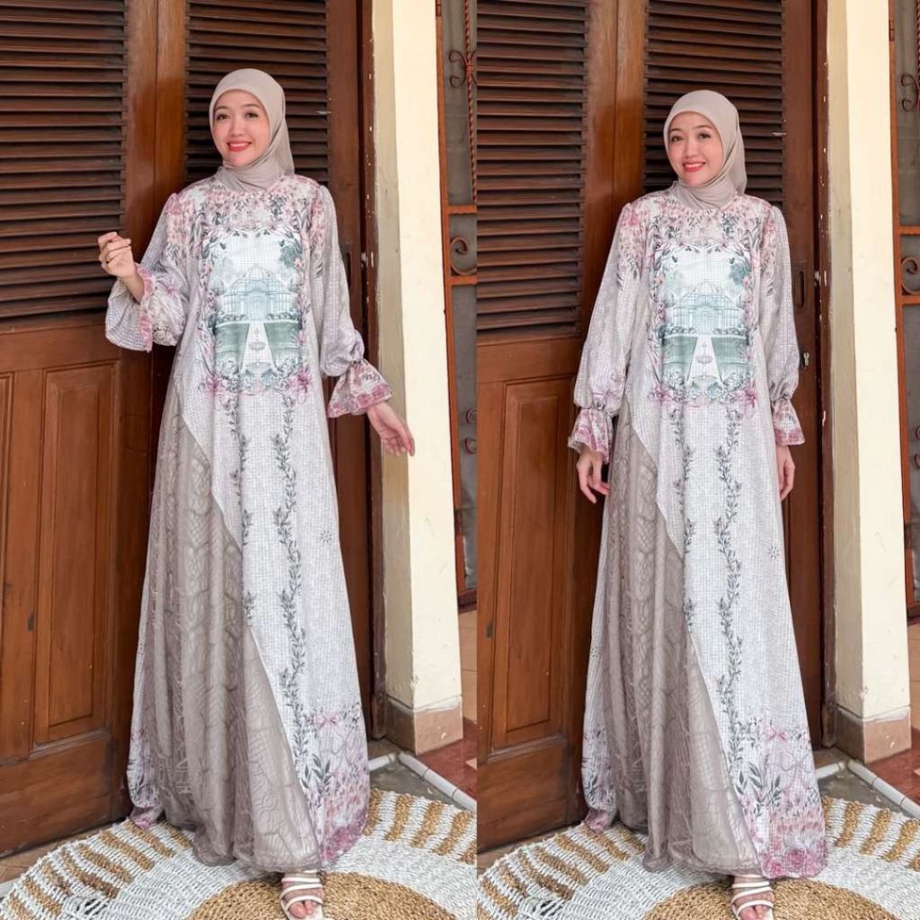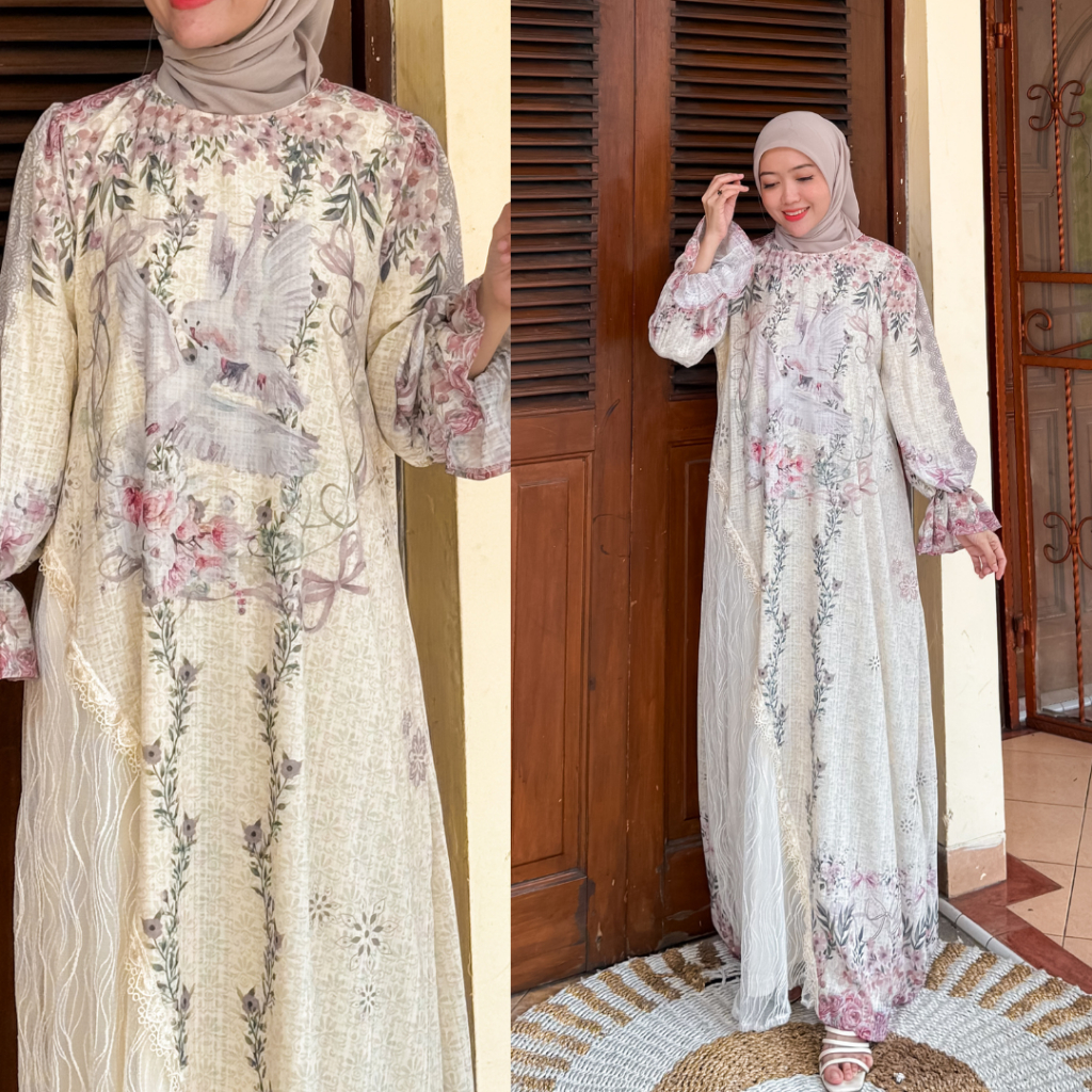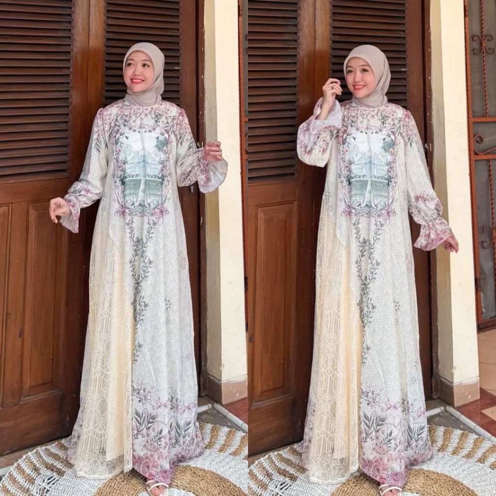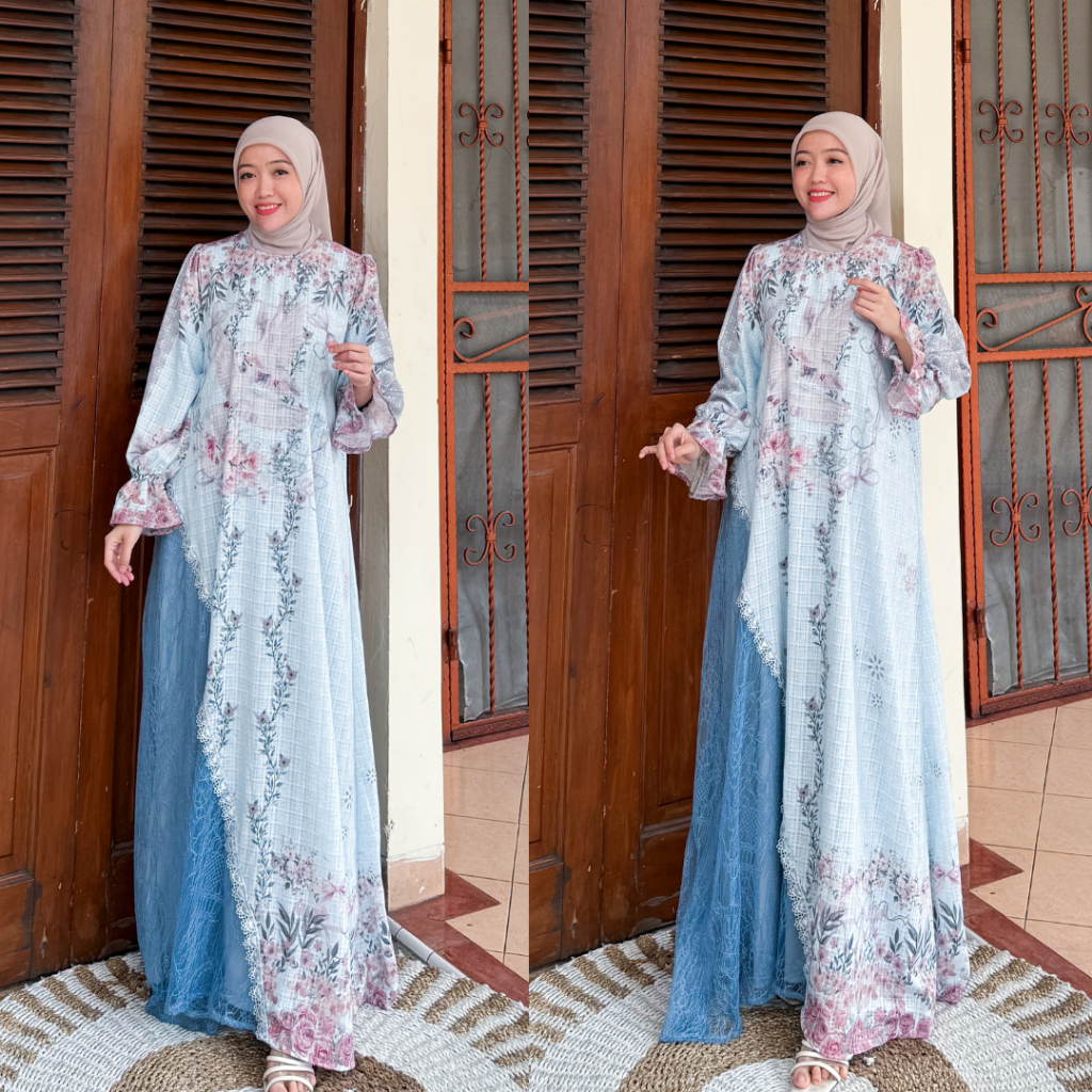 DP 0 Felica Gamis Mewah Lace Cantily Korean Printing Dress Full Furing Outfit Kondangan Baju Pesta Muslimah Dress Lembut Panjang Wudhu Wanita