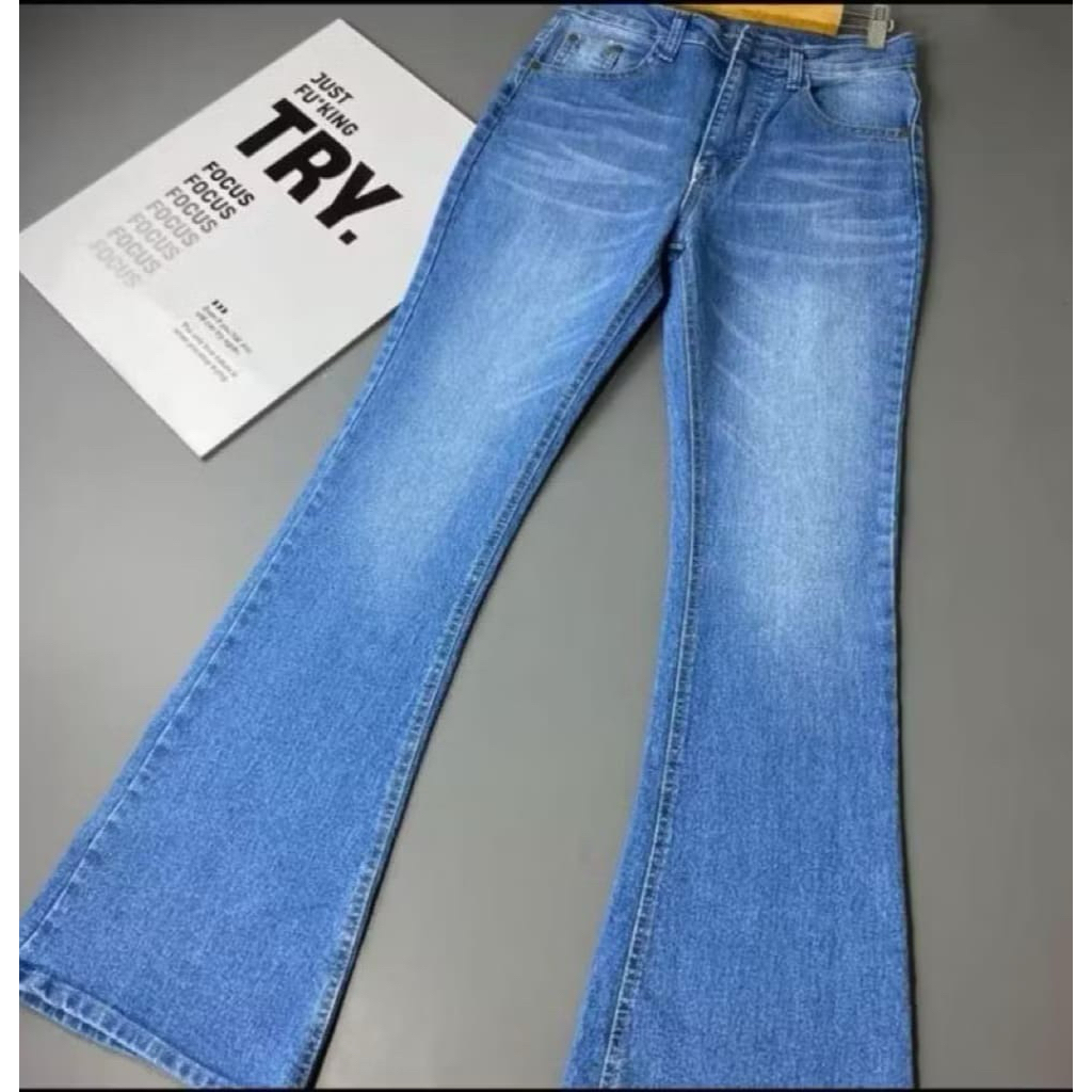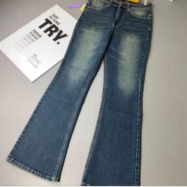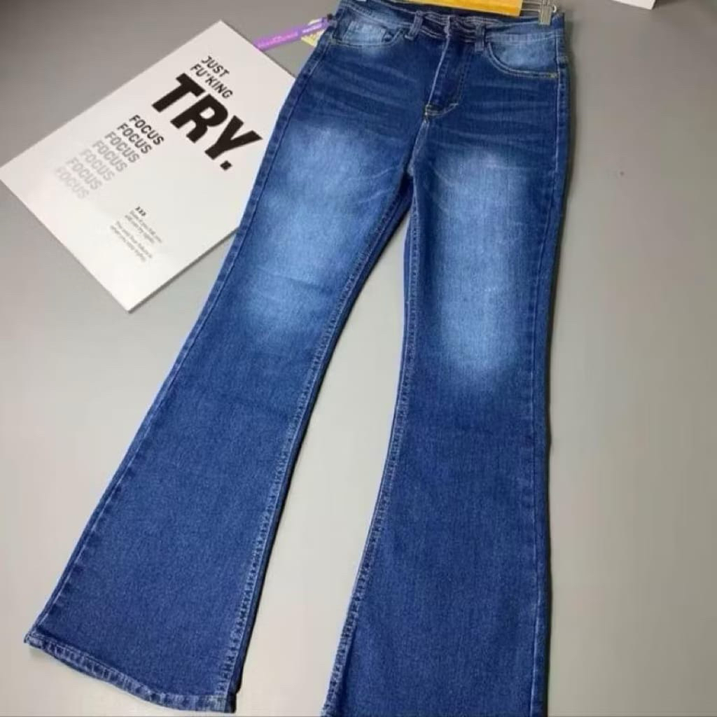 Celana Cutbray Retro Jeans Wanita High Waist Bahan Stretch Tebal Nyaman Dipakai